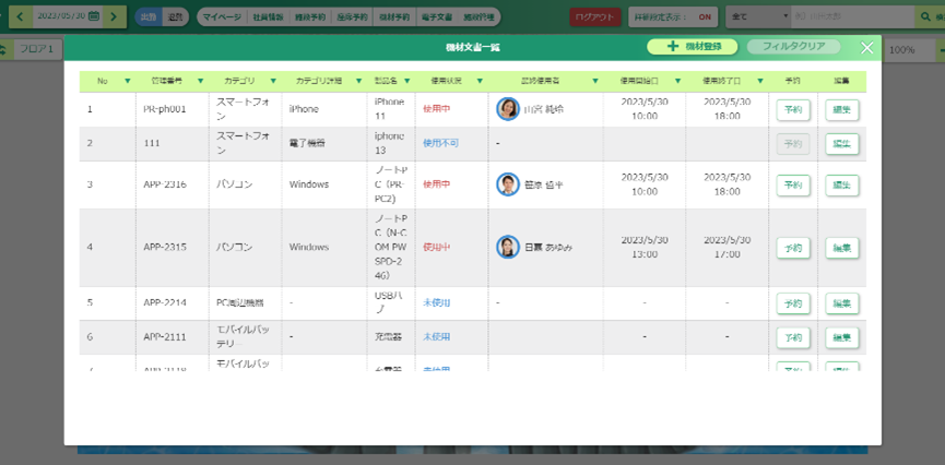 ▲機材管理機能