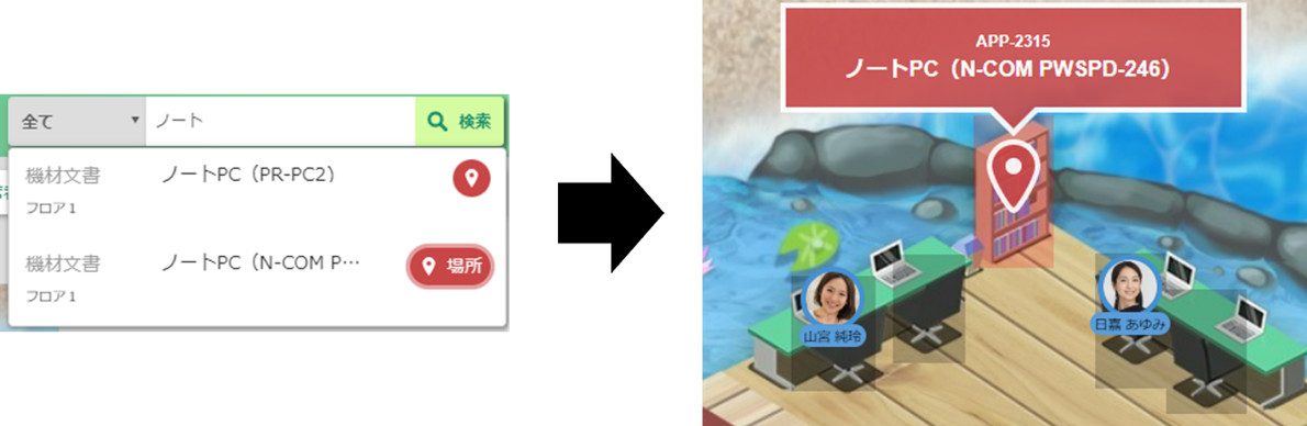▲検索機能から在庫の場所の表示も可能