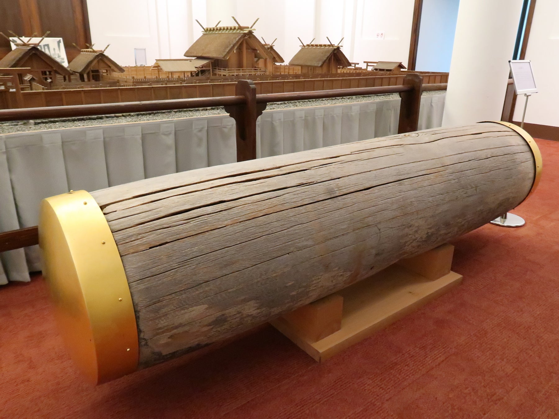 今回、展示する「内宮正殿鰹木」は、平成25年に行われた第62回神宮式年遷宮により、新しく作り変えるまでの20年間、実際に使用されていたものです。