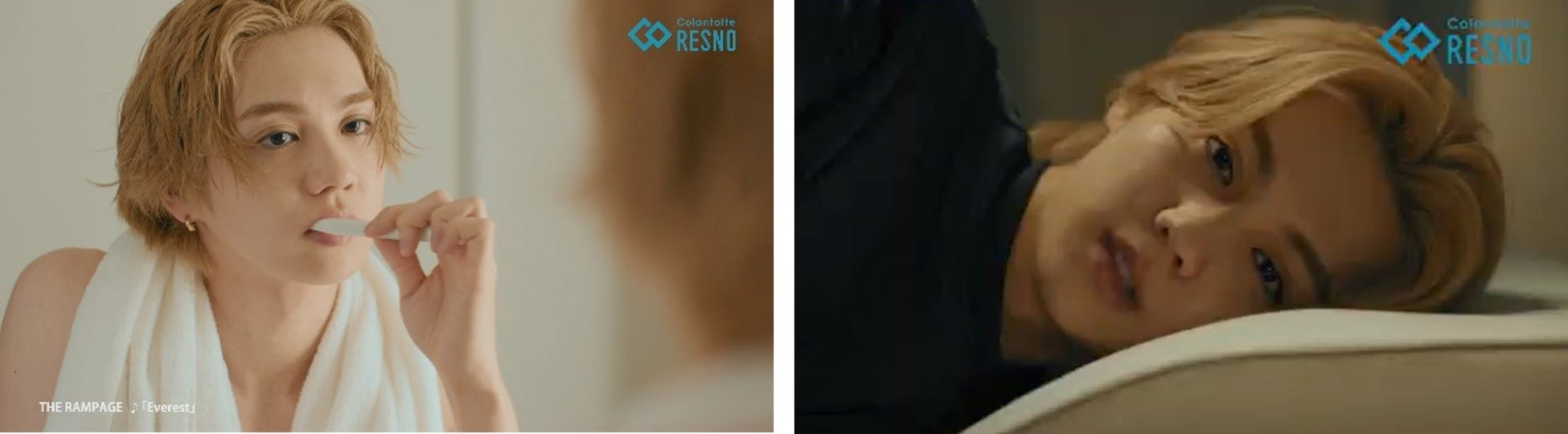 メンバーの帰宅後にフォーカスした動画で、一流のパフォーマーとしての日頃のケアや睡眠の重要性が語られており、睡眠をサポートするコラントッテRESNO(レスノ)製品が使用されています。