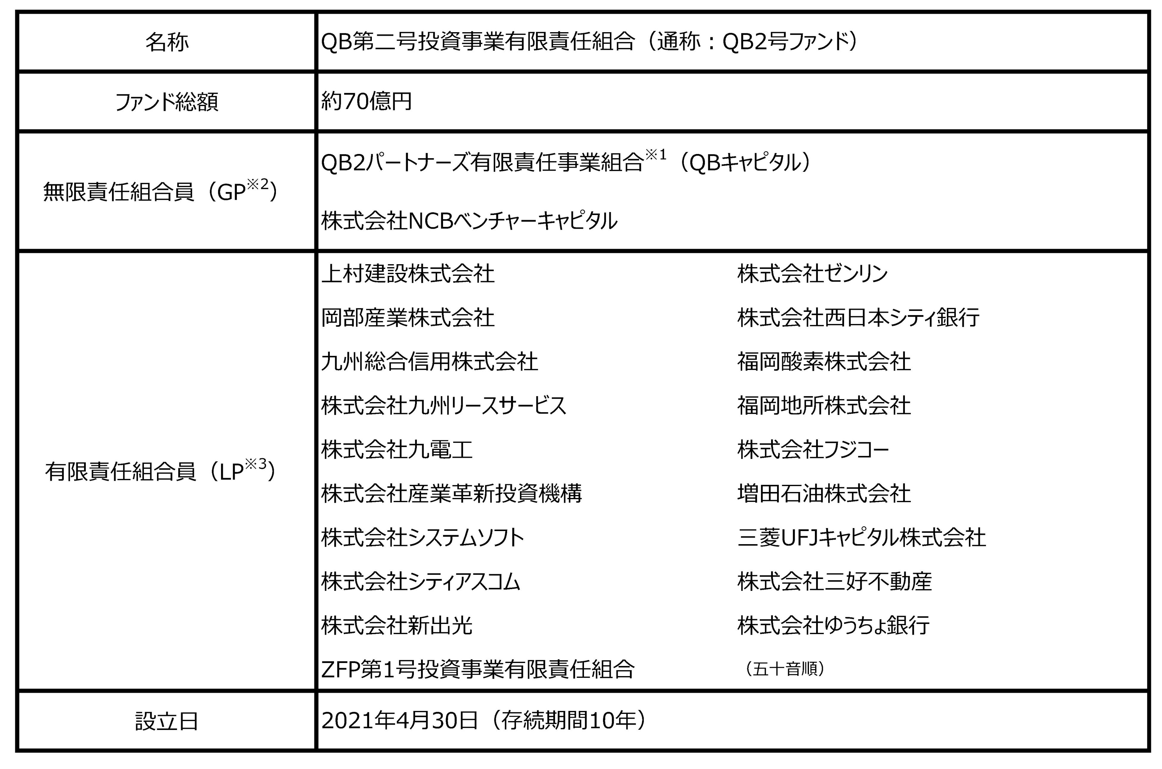 ※1 QB2 パートナーズ有限責任事業組合:本ファンドを運営するためにQB キャピタル等が設立したLLP