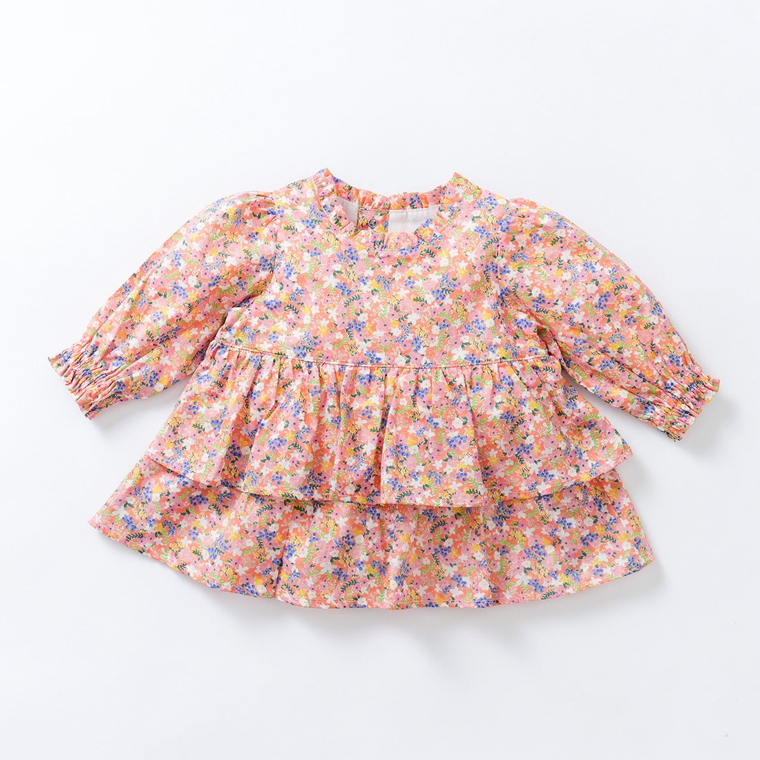 背面のボタンにはリングドットボタンを使用しており、留めやすく外れにくい仕様になっています。また、ウエスト部分まで開くので脱ぎ着しやすい設計になっています。