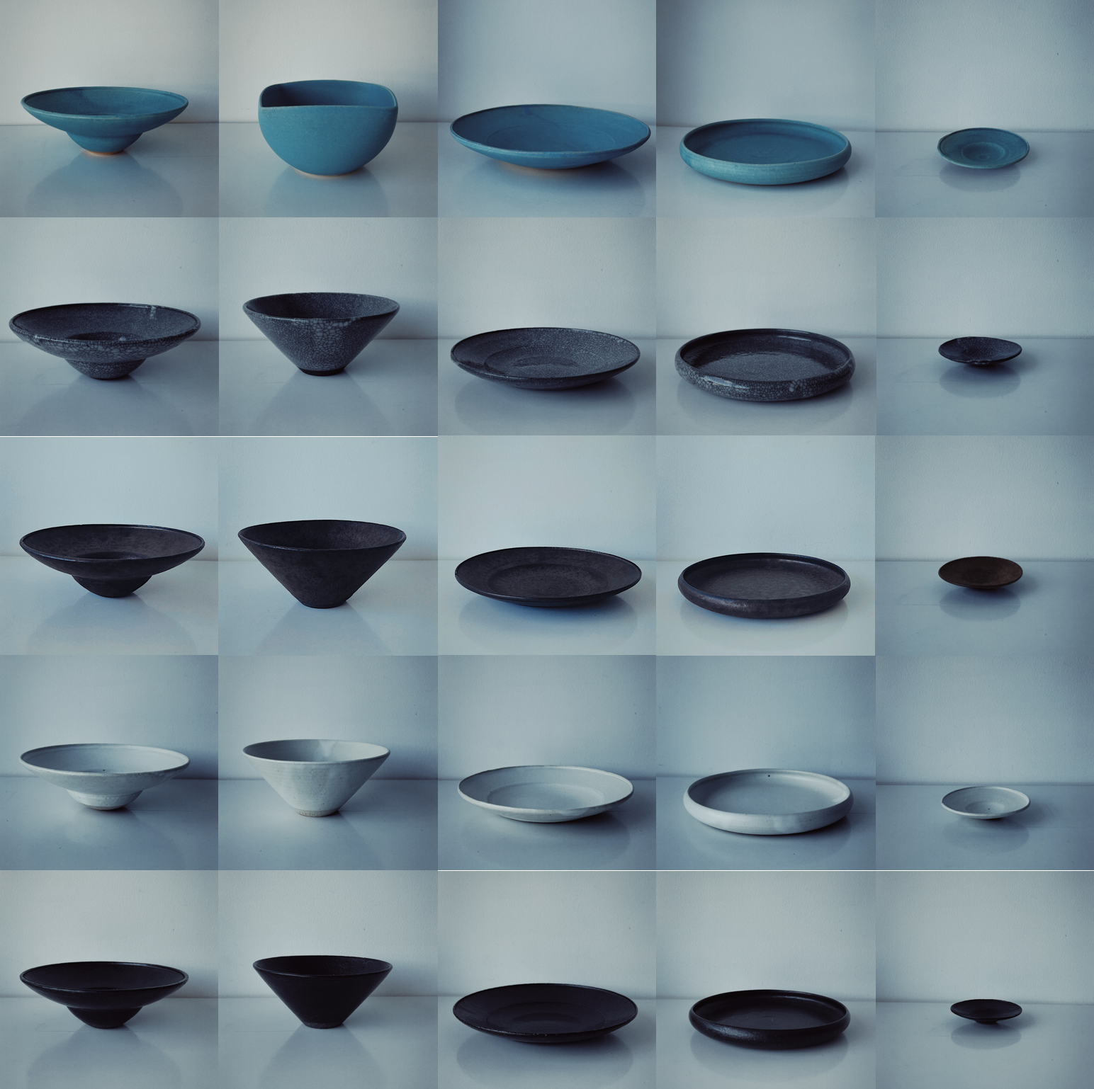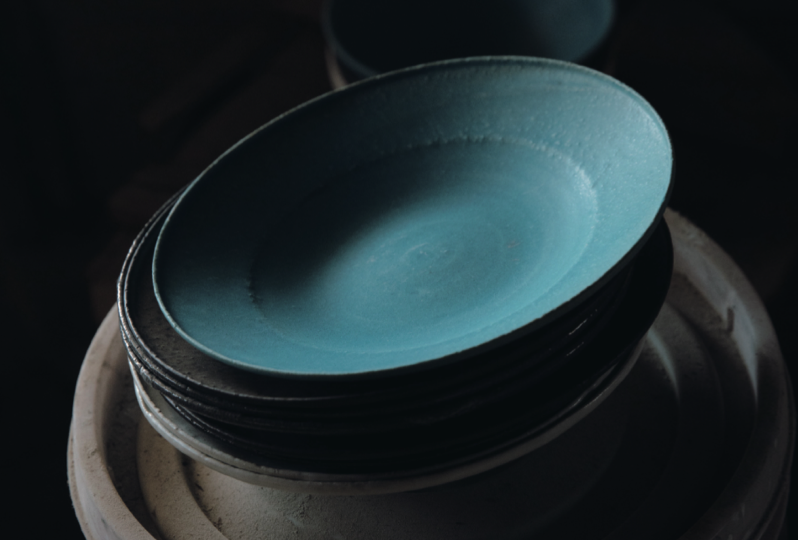 プレート・リムプレート・リムボウル(S)・リムボウル(M)・ボウルの5種類の器からなる「奏-KANADE-」は、トルコ釉を使った“HANAASAGI、ツヤのあるグレーの釉薬のなかに、職人が手作業で墨を流し込んだ墨貫入の“KESHIZUMI”、マットなブロンズに控えめなゴールドで使い込むうちに色が落ち着き、こなれた風合いに育つ銅彩釉の“BINROJIZOME”、ニュアンスのあるマットな質感が手にしっくりと馴染む白釉の“SHIRONERI”、いつもの料理が特別に感じられる黒釉の“SUMI”の5色を展開します。