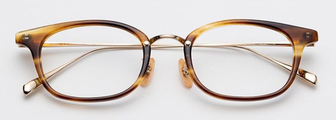 チタンとセルロイド(一部アセテート)のコンビで丸みのあるスクエア。フレーム中央部分の金属には、彫金が施されレトロな雰囲気を残しています。形は顔なじみの良い丸みのあるスクエア。カラーは透明感のあるクリアカラーを採用することで都会的な印象に。