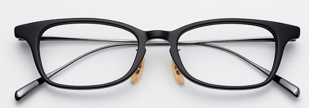 チタンとセルロイド(一部アセテート)のコンビネーション。フロント部は、トレンドになりつつある、やや天地が浅いスクエアシェイプでクールな印象。サイドに金属をあしらうことで、スッキリしたスタイリッシュさが特長。