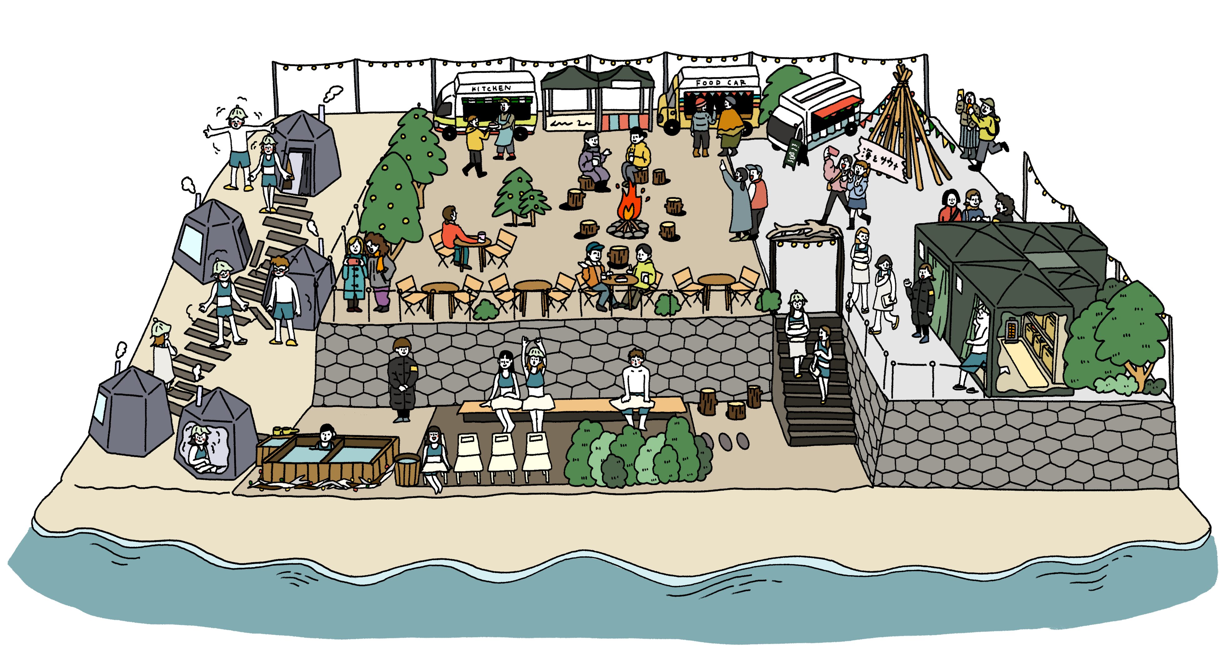 近年空前のサウナブームによって、サウナ利用者が増加しております。サウナの楽しみ方も多様化しており、これまで以上に身近なものとなりつつあります。サウナの本場であるフィンランドに習って地域資源を最大限活用し、鋸山エリアだからこそできる非日常的なサウナ体験を提供すべく、紀伊乃国屋は年内にサウナ常設の宿泊施設のオープンを予定しています。それに先駆けて、地域の魅力を多くの方に感じていただけるよう2月5日6日に「海とサウナ」を開催いたします。