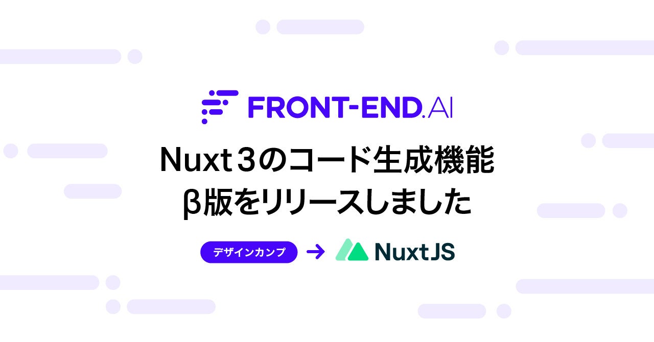 フロントエンド開発自動化サービス「FRONT-END.AI」、Nuxtのコード生成機能のβ版をリリース