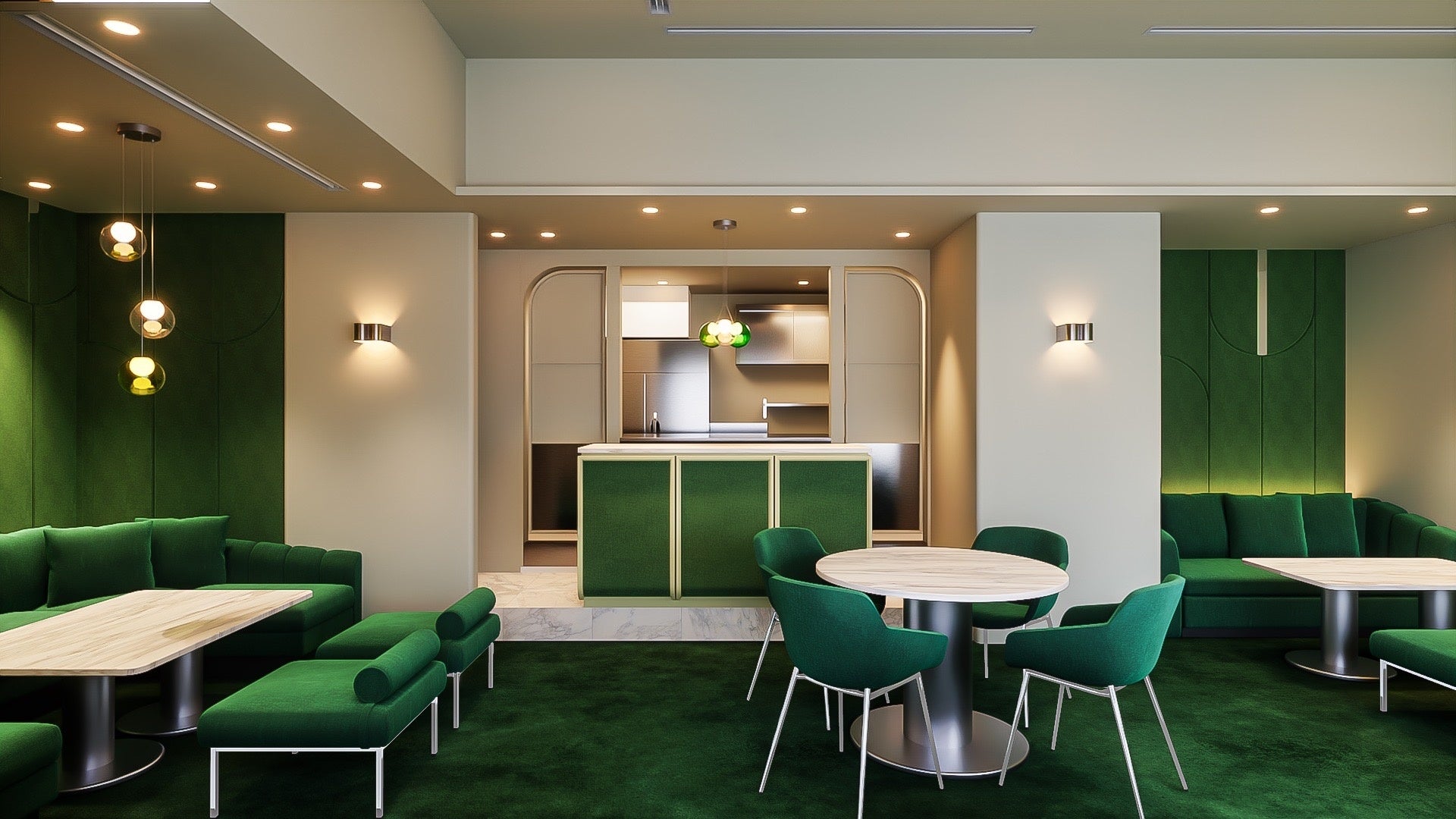 ホテルのクラブラウンジをイメージ、グリーンとシルバーをシンボルカラーとし、モダン過ぎずエレガント過ぎない上質な空間を演出。ゆったりとしたソファー席で、華やかな料理と共に穏やかな時間を満喫していただく。