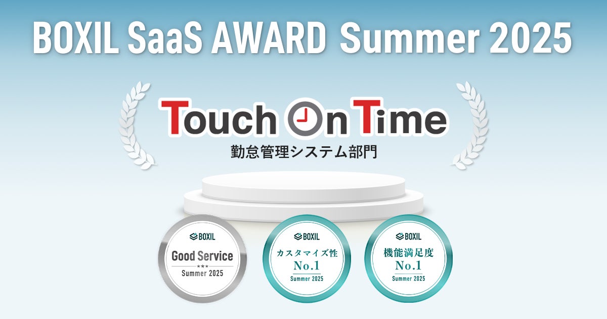 Touch On Time(タッチオンタイム)、「BOXIL SaaS AWARD Summer 2025」勤怠管理システム部門で3つの賞を受賞