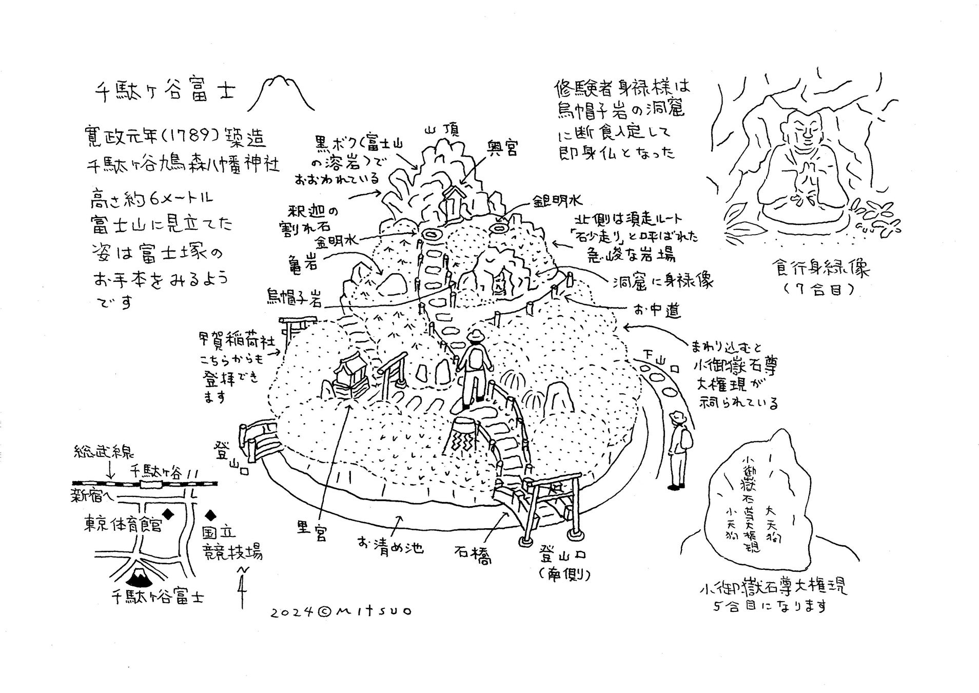 江戸時代には一般的に「お富士さん」と呼ばれていた小さな「お富士さん」を書き込みました。