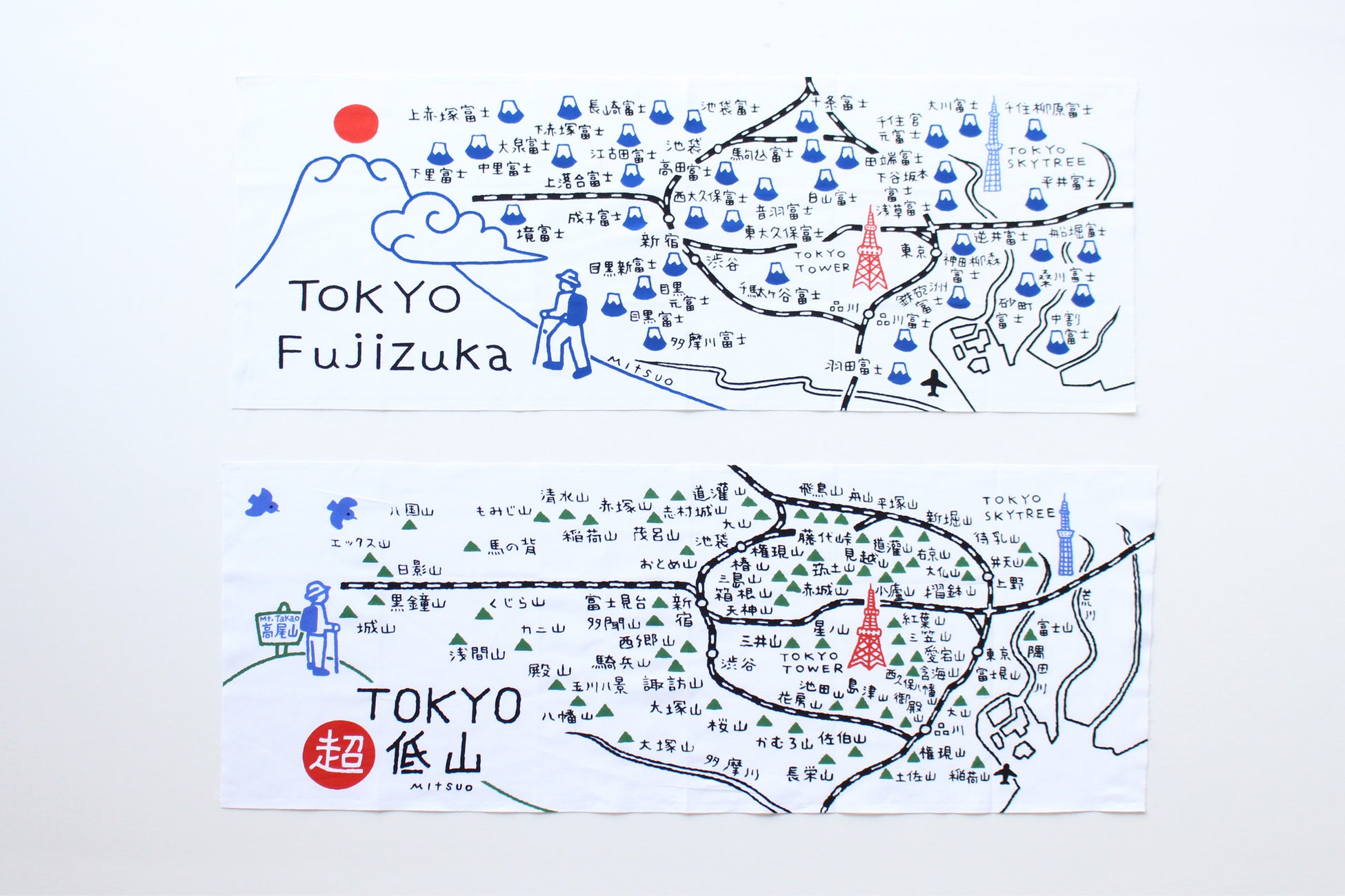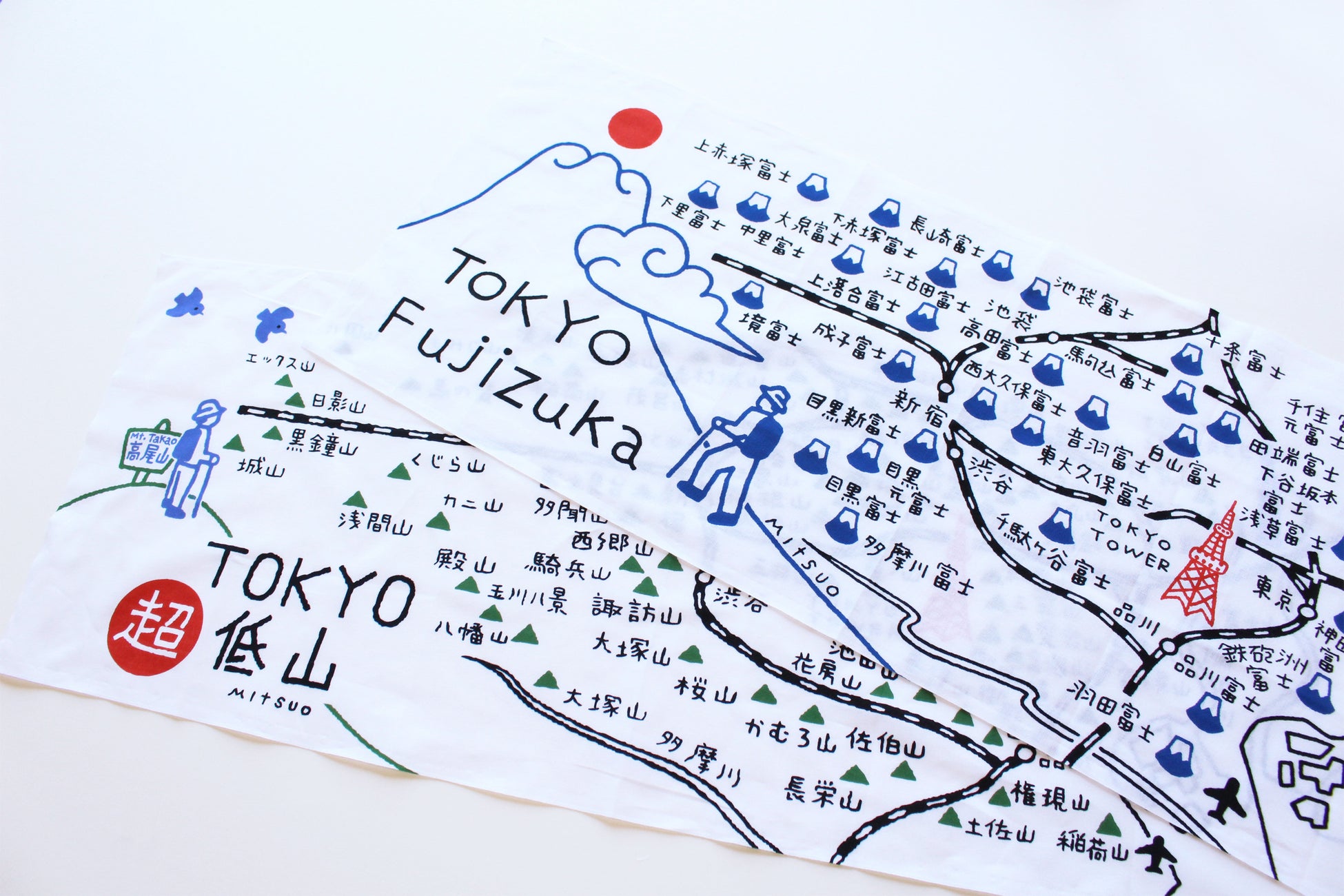 この度制作をした手ぬぐいは【TOKYO 超低山】と【TOKYO Fujizuka 】の2種類です。
