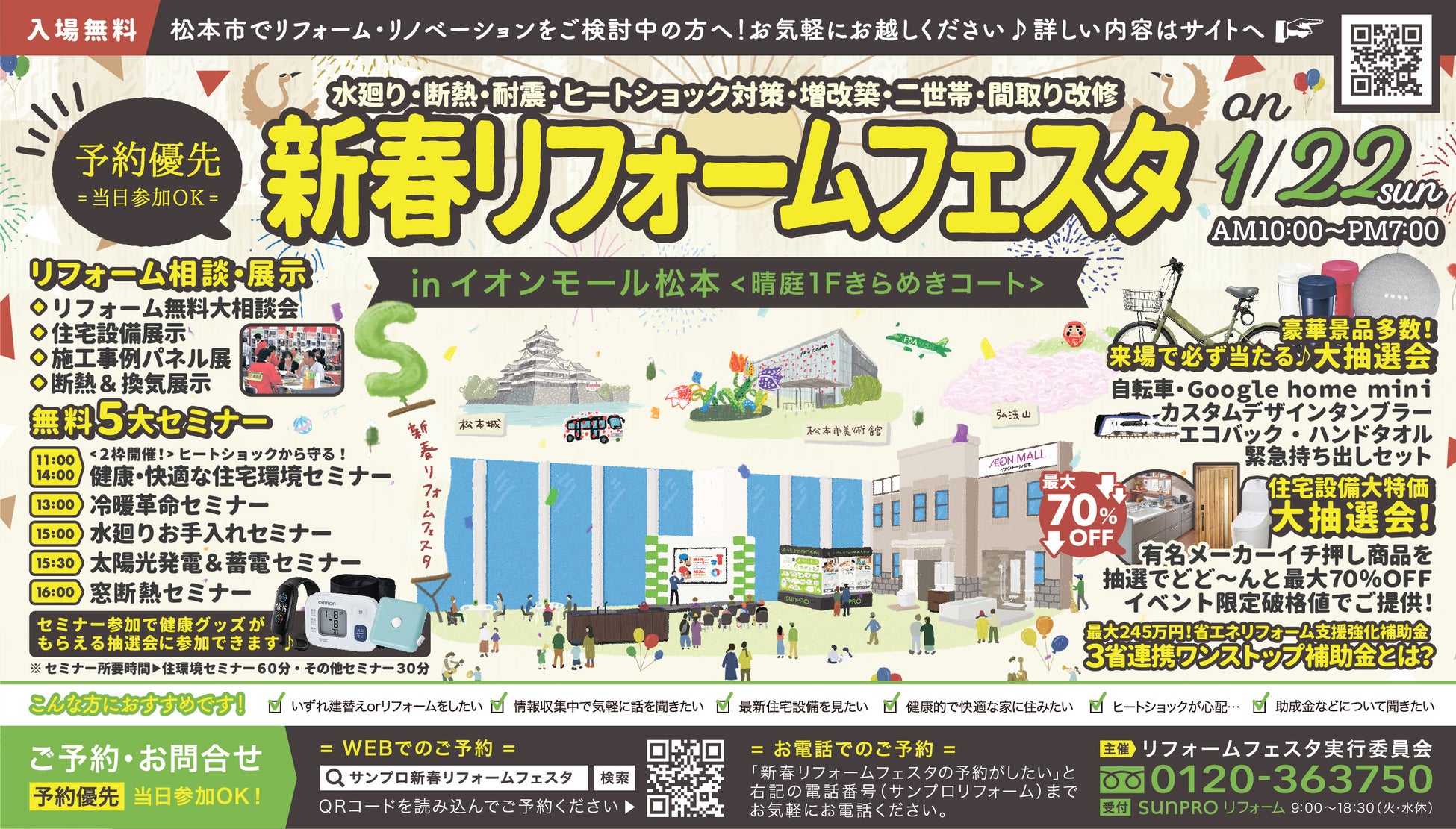 松本市で健康・快適な住宅環境の実証実験が終了。実験結果発表および、活用に向けたセミナーを「新春リフォームフェスタ」にて開催いたします。