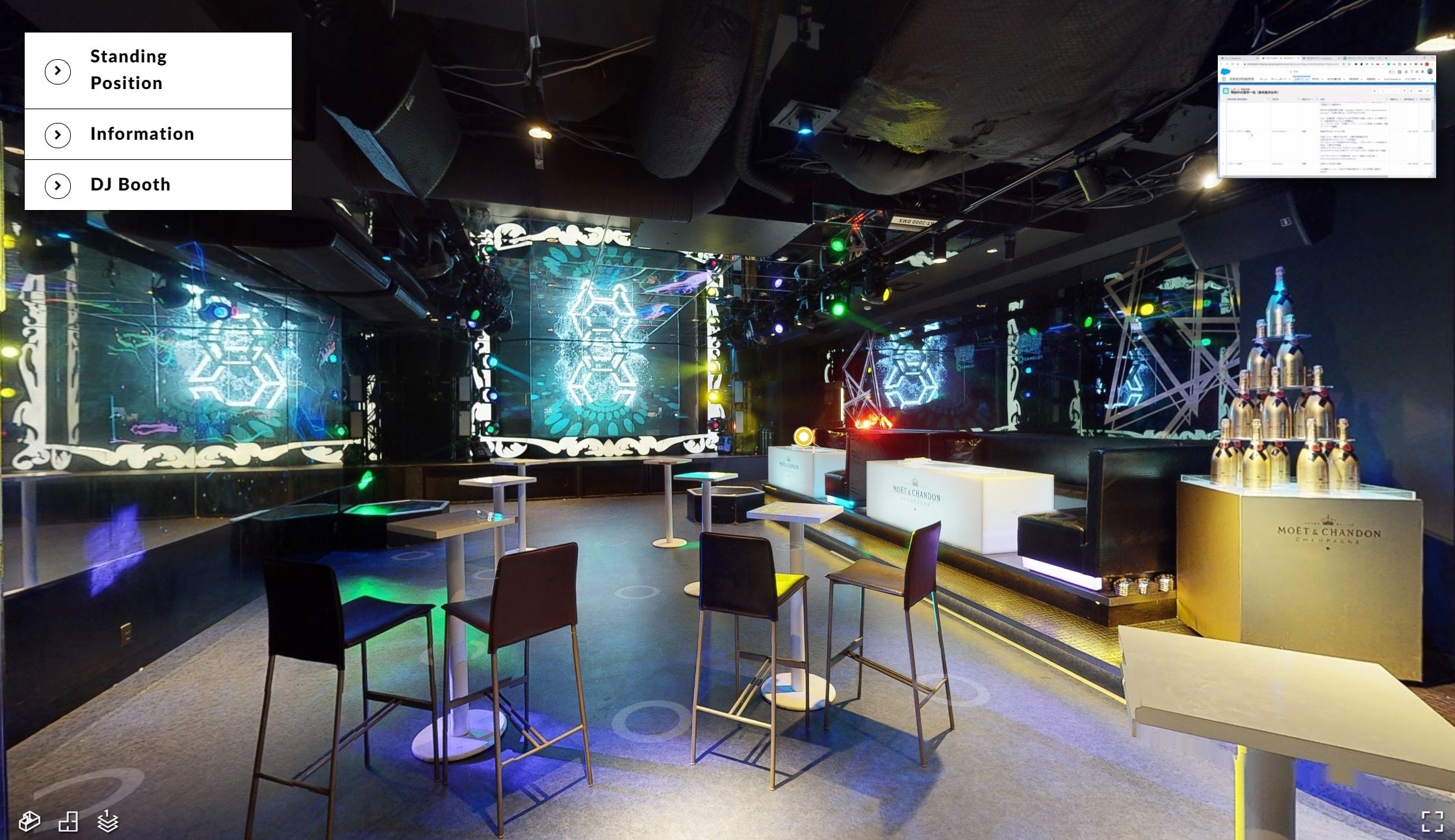 メタバース空間に登場するクラブに関してはCLUB CAMELOT(東京・渋谷)とSEL OCTAGON(東京・六本木)と提携し、各クラブメタバース空間内にて2021年12月20日よりDJの配信が行われ、視聴者はプレイするDJ達のアバターにギフトアイテムを贈ることができ、ギフトを贈った方とDJとのコミュニケーションを開始します。