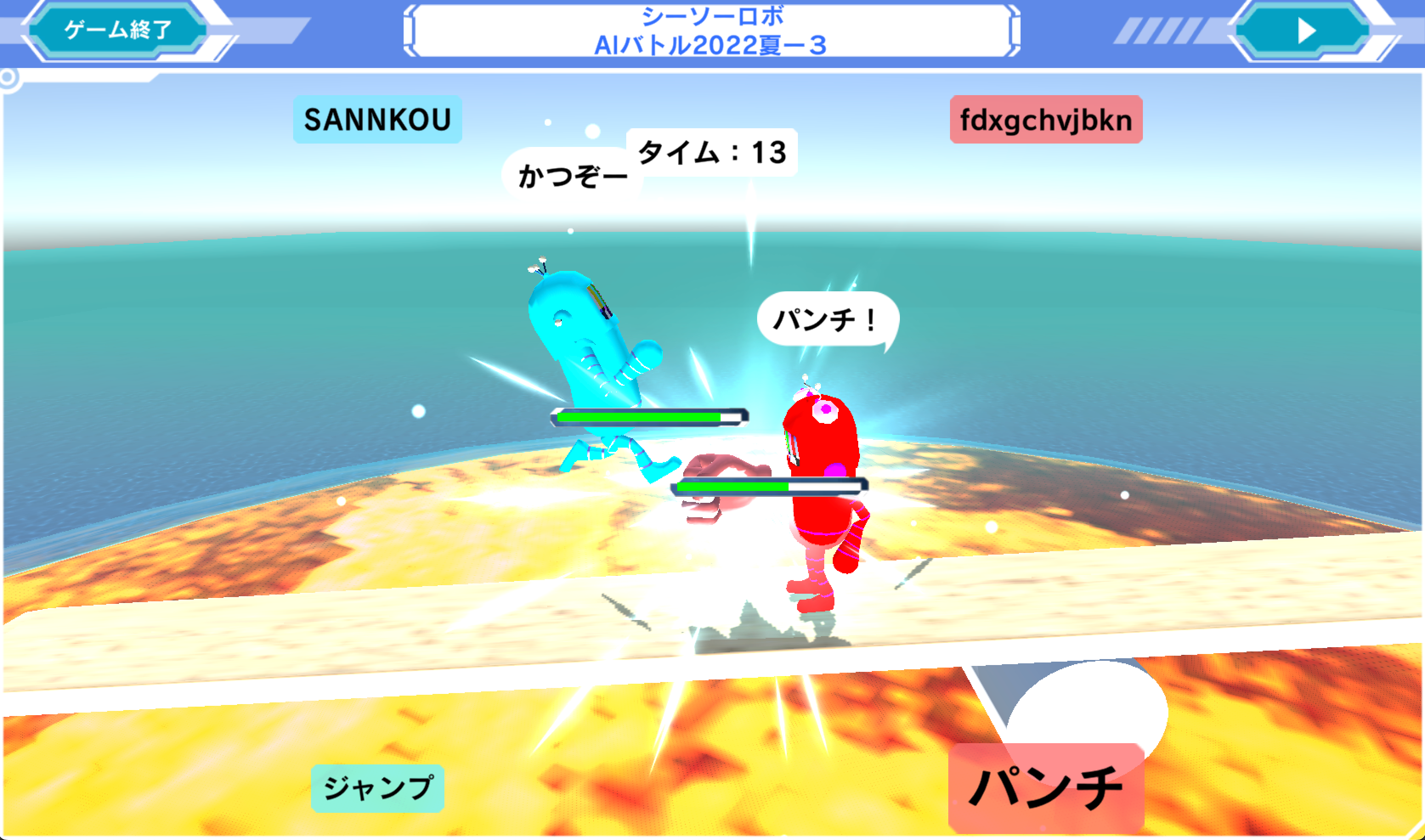 体験会では、シーソーの上でAI同士が戦う「シーソーロボ」というゲームを作っていきます!