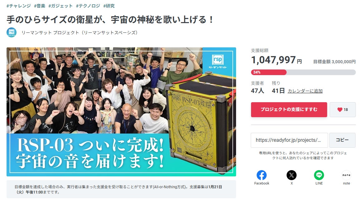 打ち上げに向けたクラウドファンディングを実施中