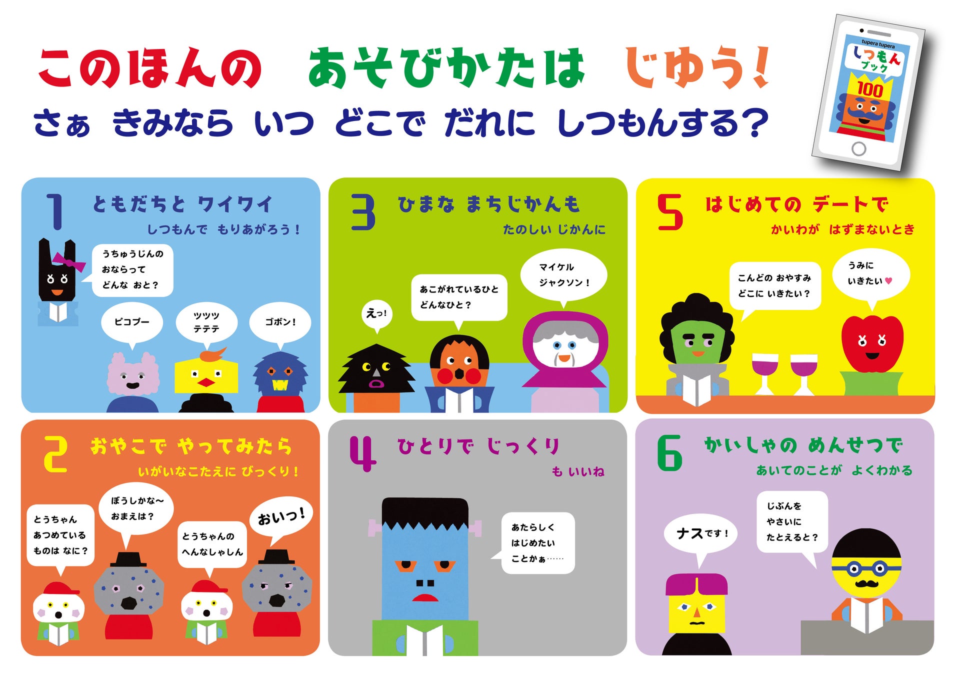 SNS で遠くの人と簡単につながれる、デジタルの時代。そんな時代だからこそ、今、目の前にいる人と人とが、本というアナログなツールを通じて、より深くつながってほしいという想いから、この本は生まれました。古くて新しい、大人も子供も遊べる、スマホ型コミュニケーションブック。