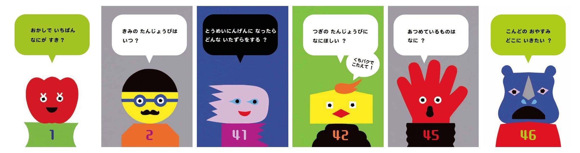 しつもんは まほうのことば しつもんをすると あたらしいなにかがうまれます きみのとなりの たいせつなひと はじめてであった しらないひと このパークで たくさんのしつもんをしてみてください しつもんをとおして ひととひととのかんけいが もっとふかまったり きのあうひととの であいがあったら うれしいです さあ おとなも こどもも しつもんパークをたのしもーん! |