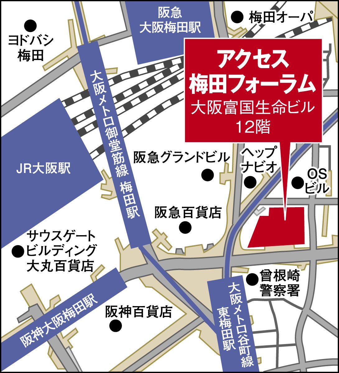 【会場】:アクセス梅田フォーラム(大阪市北区小松原町2-4 大阪富国生命ビル12階)