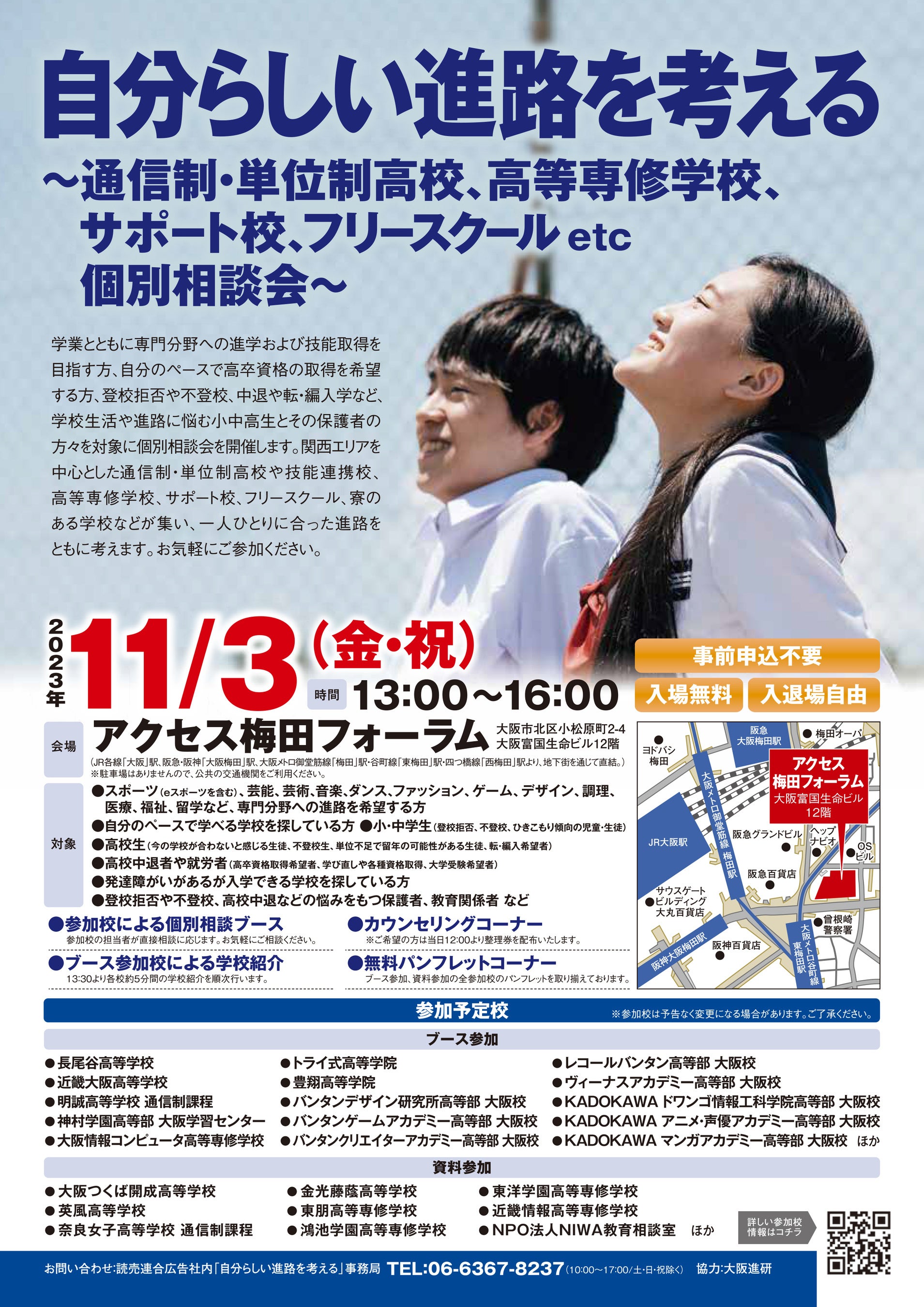 ~通信制・単位制高校、高等専修学校、サポート校、フリースクール etc. 個別相談会~