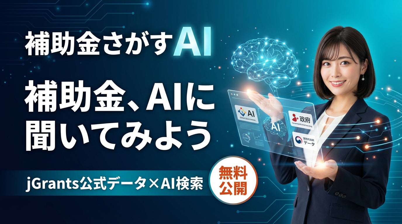 「補助金、AIに聞いてみよう」── jGrants公式データ×AI検索で最適な補助金が見つかる「補助金さがすAI」を公開