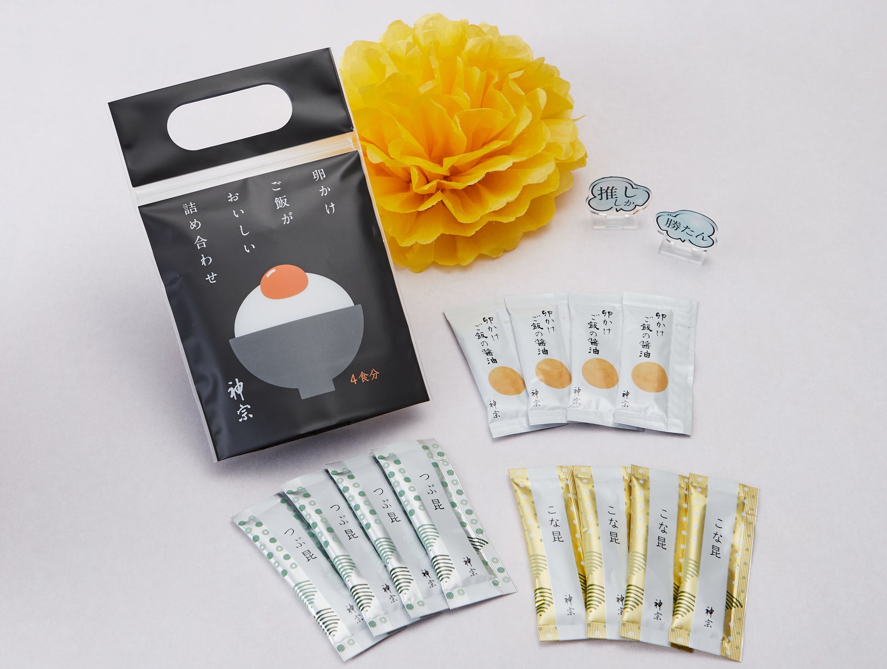 神宗の「卵かけご飯がおいしい詰め合わせ」は、おかげさまで発売12周年。発売12周年を記念して、全7色の推しカラー(推し色)で選べるパッケージと、専用の手提げ袋を数量限定でご用意いたしました!