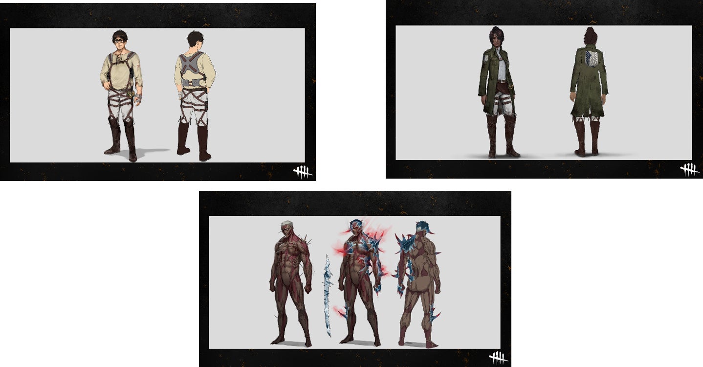 今回発表となる「進撃の巨人コレクション」には、キラーとサバイバーぞれぞれに10種類の衣装が用意され、双方の作品におけるキャラクターの個性や特徴にマッチするよう丁寧に創作されました。ドワイトはエレン、ザリーナはハンジ、そして鬼には鎧の巨人が実装されます。進撃の巨人ファンにはたまらないコレクションになるでしょう。