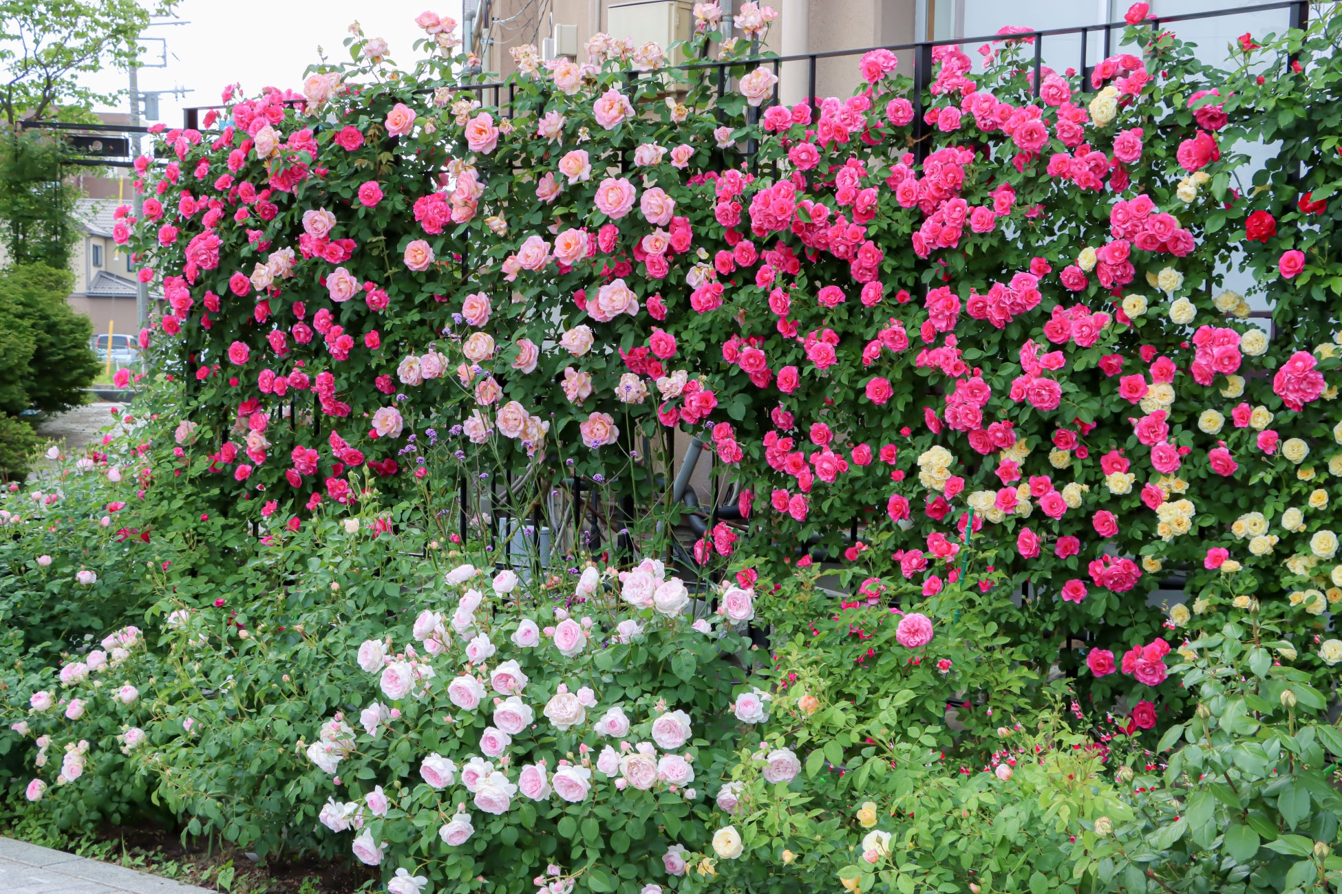 笛吹市は春に咲く桃の花が全国的に有名ですが、実は笛吹市の花はバラ。山梨県内でもバラの生産が盛んな地域で、市内のいたるところでバラを見かけ市民に親しまれています。2021年4月より糸柳でもバラが植えられ、今では「薔薇の小道」として憩いのスポットになりました。