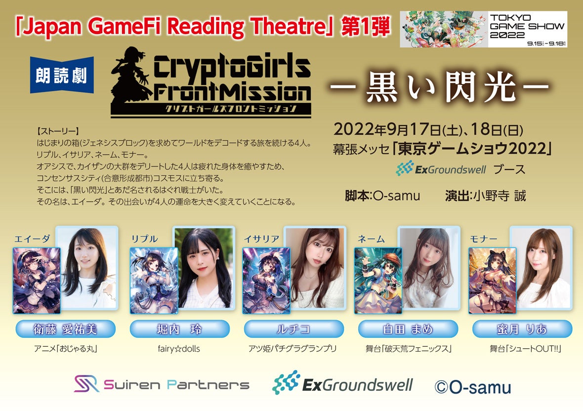 弊社ブースでは、新作タイトルの発表や作品の「朗読劇」を上演するなど「GameFi」や「メタバース」といった注目のWeb3最前線を体感していただけます。