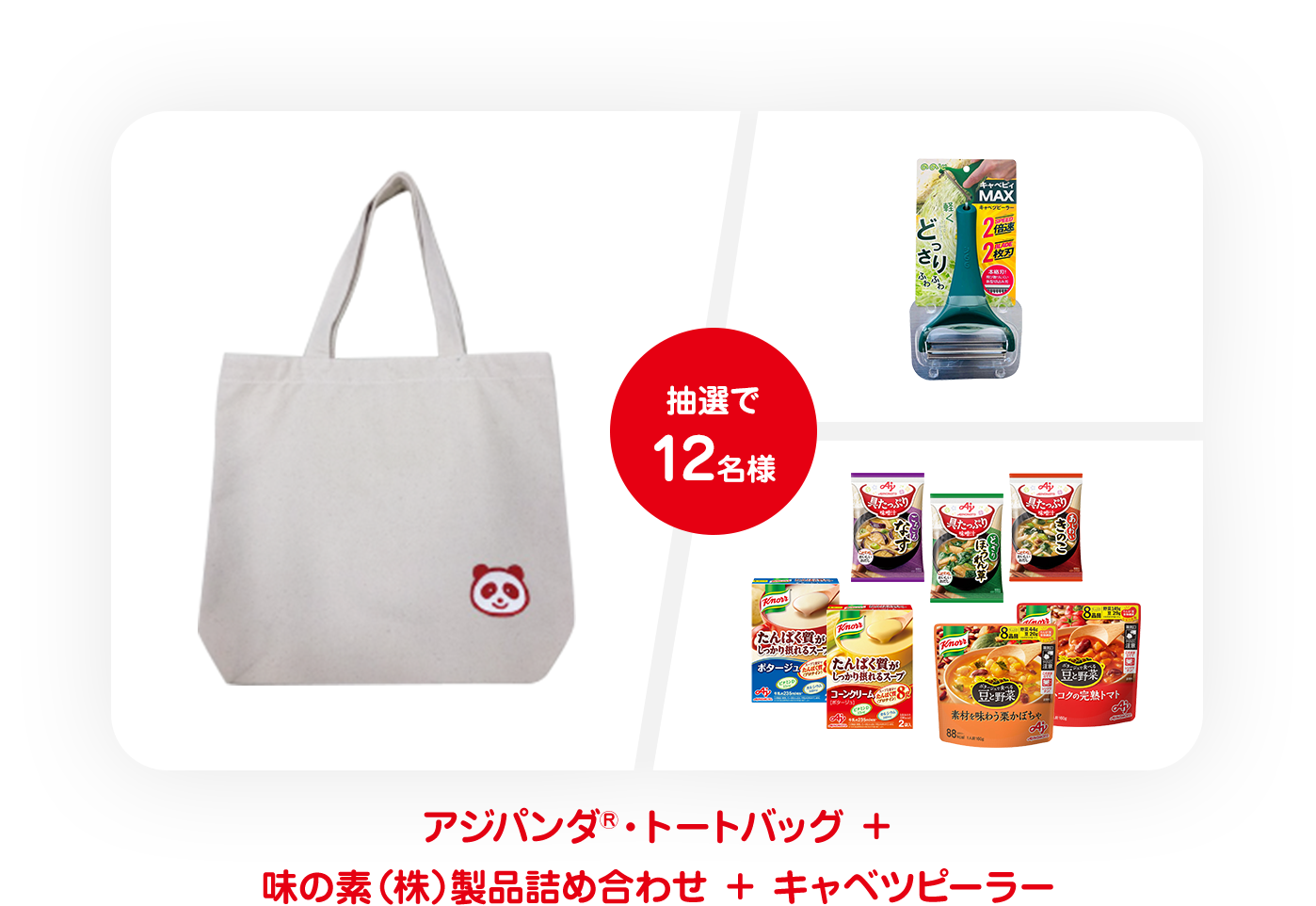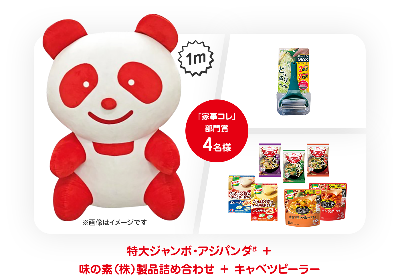 さらに期間中、公式Twitterアカウントをフォローし、キャンペーンに参加することで抽選で特大ジャンボ・アジパンダ®ぬいぐるみを含むアジパンダ®グッズや、味の素㈱の製品詰合せ等があたります!