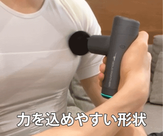 マッサージガンとは主にトレーニングを行った後の筋膜リリースをはじめ、一般的なリラクゼーション、筋肉疲労回復などを目的に開発されたマッサージ機のひとつ。医療機器ではないため雑品として扱われるが、その手軽さとピストン運動による高い効果から、昨今はハンドマッサージ機のひとつとして人気を集めている商品だ。