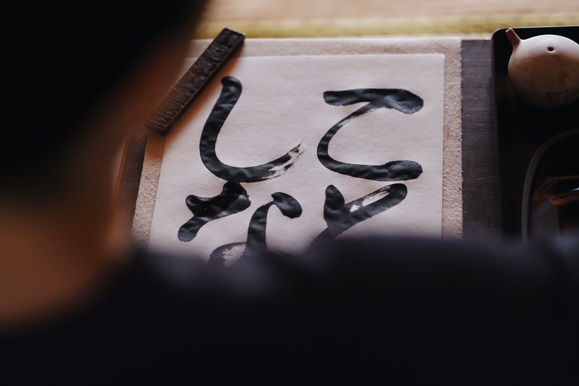 特別なセットを包む風呂敷は、京都を拠点に活動する書家・加山幹子にKOTOSHINAのプロダクトを使用いただき、感じるままに表現いただいた書き下ろし作品をあしらいました。