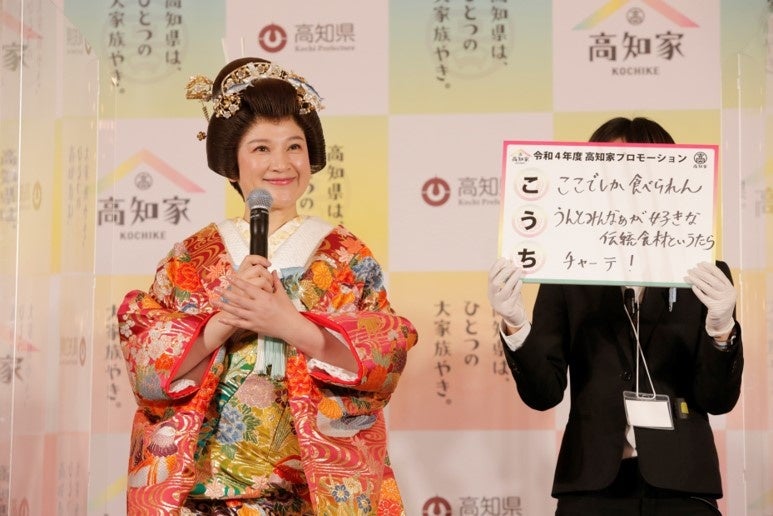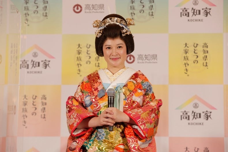 「令和4年度 高知家プロモーション 記者発表会」開催 島崎和歌子さん・三山ひろしさん 結婚式をイメージした和装姿に番傘で入場!