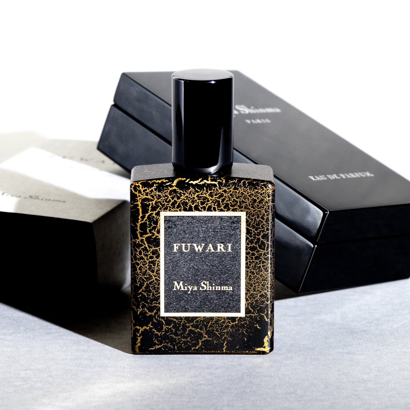 香水瓶には、まるで半紙の上に描かれたように香水名がデザインされ、シンプルながらもオリジナリティ溢れる独自のスタイルを築いています。ディテールにまで繊細さを宿らせたミヤ シンマの香水は、制作への思いを綴ったミヤ シンマのメッセージが添えられて、美しい黒漆の箱に大切に収められています。