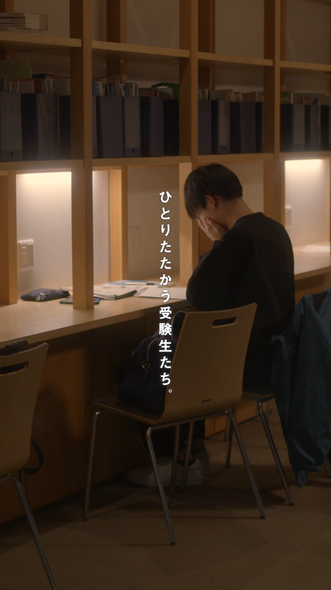 2022年12月、実際に大学受験を目前に控える受験生にサプライズを実施。孤独と不安の中、勉強をがんばる受験生たちが、休憩中にSNSのストーリー投稿を見ていると、カロリーメイトのアカウントから、家族や友人からのメッセージ動画が映し出されます。受験生の一番そば、手のひらの上のスマホに届いた、応援団からの普段は聞けない真っ直ぐなエール。受験生たちのリアルなリアクション、溢れる想い。その一部始終が収められています。「あなたには、背中を押してくれている仲間がきっといる」そんなメッセージを込めた、すべての受験生に贈るドキュメンタリームービーです。