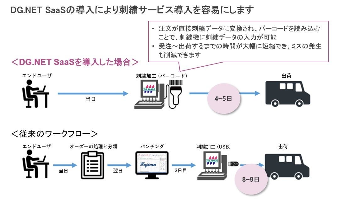 「DG.NET SaaS」はクラウド技術で刺繍サービス導入の課題を解決いたしました。