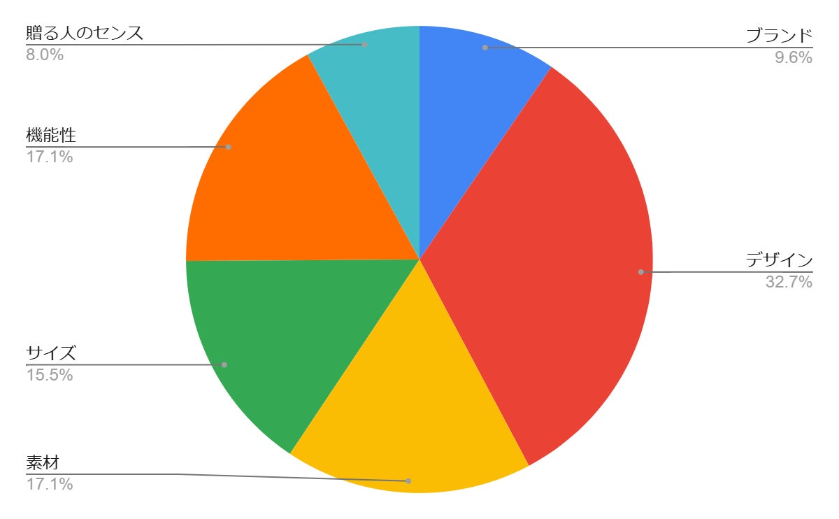プレゼントを送る側の金銭的な負担を気にしている結果になりました。1〜2万円の範囲が、貰う側にも心理的な負担が小さく、純粋に嬉しいと感じられることがわかります。
