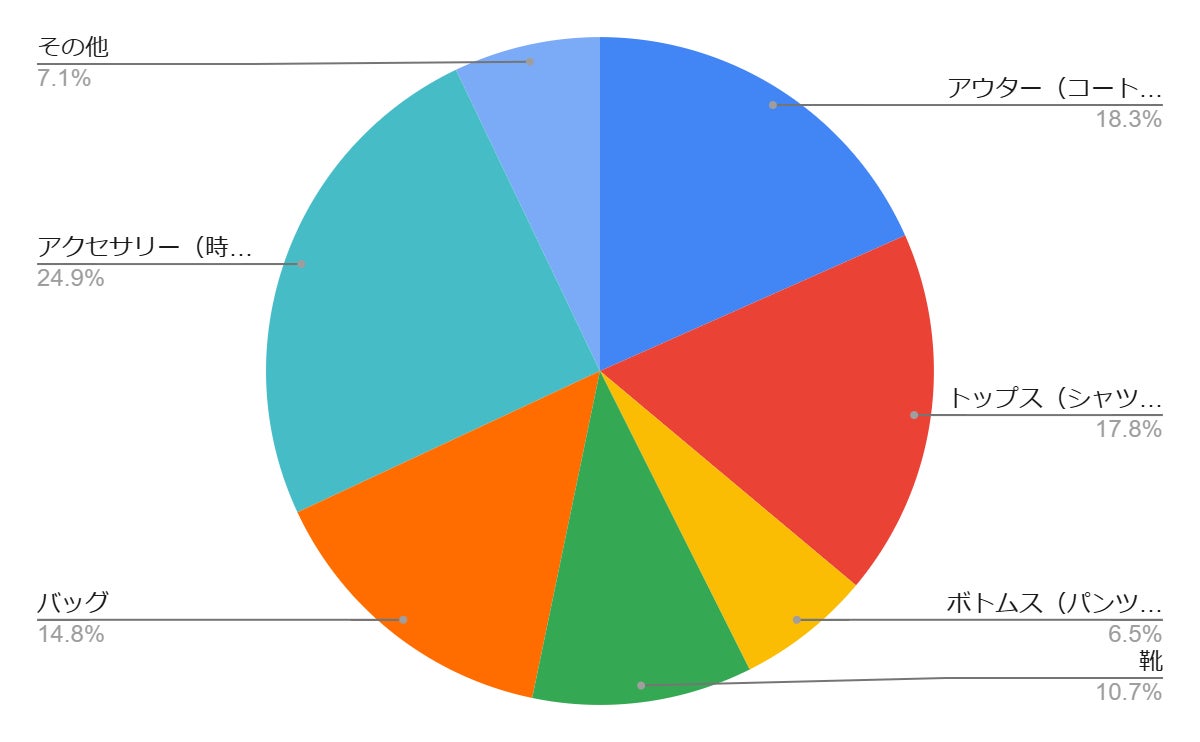 プレゼントとして貰って嬉しかったアイテムの上位は、アクセサリー(時計、ネックレスなど)が24.9%、アウター(コート、ジャケットなど)が18.3%と、比較的高額な商品が喜ばれていることが分かりました。