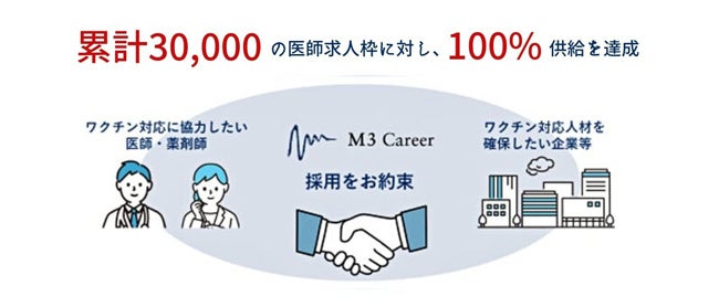 医師会員30万人以上を有するエムスリーグループで医療人材ビジネスを展開するエムスリーキャリア株式会社(本社:東京都港区虎ノ門)は、3回目の新型コロナワクチン職域接種においても、医師・薬剤師採用を確約いたします。