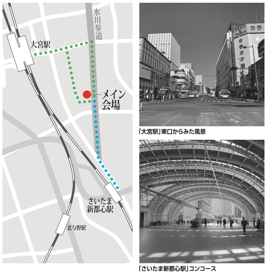 「さいたま国際芸術祭2023」へのアクセスには、「さいたま新都心駅」と「大宮駅」の2つの選択肢がある。どちらの駅もメイン会場まではほぼ同距離。