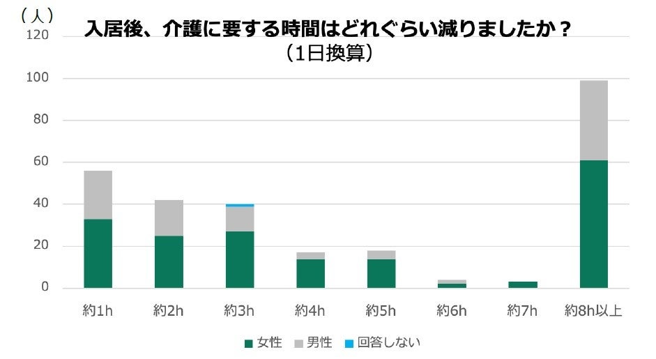 家族介護者を対象にした実態調査結果を発表 介護に要する時間が入居後1日8時間減少できた時間は仕事、趣味、家族との時間、睡眠などに当てる