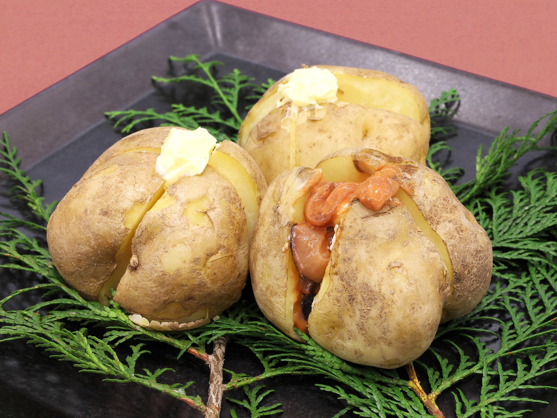 ジャガイモを加熱してバターをのせて食べますが、北海道では「イカの塩辛」と食べるのが定番。