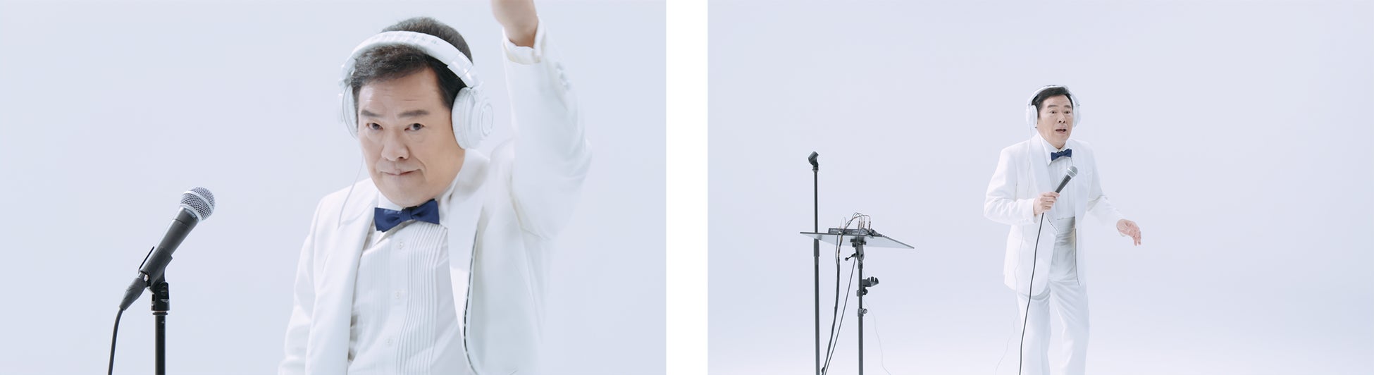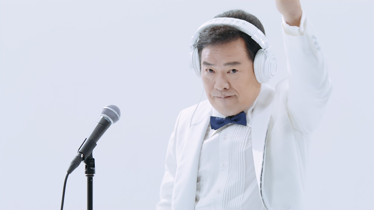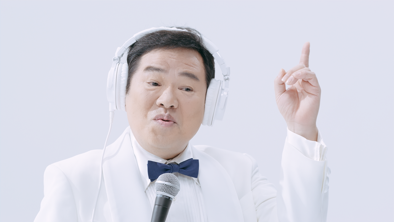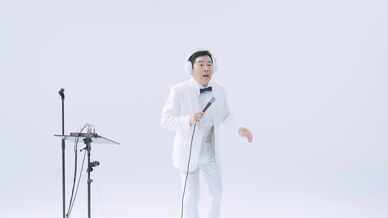 話題の一発撮り風動画のように、マイクスタンドと機材のみが置かれた真っ白な空間。自己紹介とともに「お願いします」とお辞儀をして勢いよくマイクスタンドに頭をぶつけるところから、思わずクスッと笑ってしまうようなグッチ裕三さんの世界観に引き込まれていきます。一発撮りの緊張感と神妙なグッチ裕三さんの面持ちから今か今かと歌い始めを期待しながらも、「マイクスタンドいらないんだよなぁ」「髪の毛、つぶれちゃったな」と、得意の「すかし」で裏切られること3連続。満を持して登場する美声の「Only乳」と、動画の最後を締めくくる銀吹雪、完璧なターンには圧巻です。