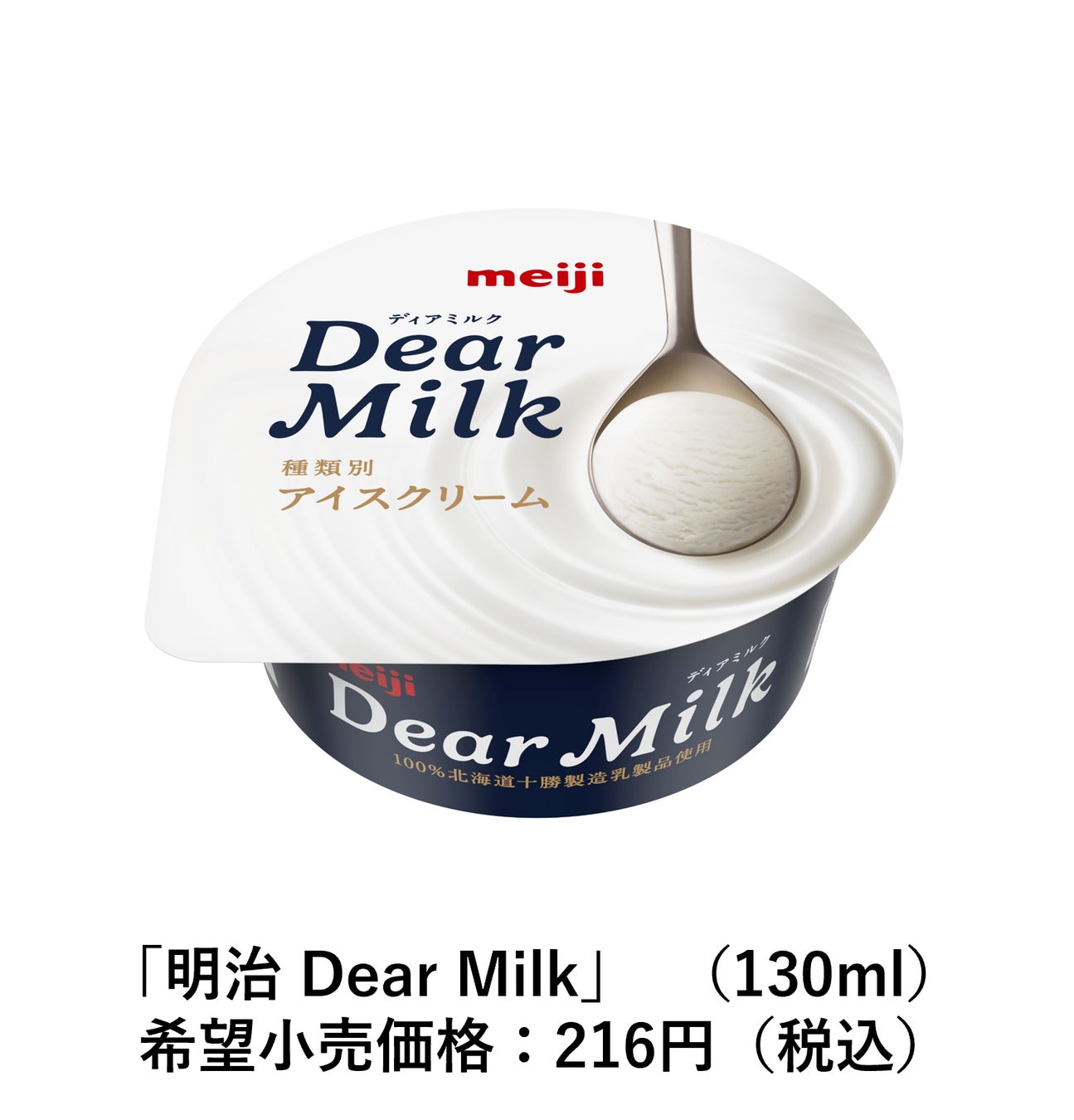 明治は“ミルクの味わいを最大限引き出したアイスクリーム”を目指した、国産乳製品(北海道十勝製造)100%使用の新しいミルクアイス「明治 Dear Milk」を、2023年3月27日より関東エリアで発売し、9月下旬から中部・関西エリアでも販売します。なお、北海道河西郡芽室町のふるさと納税返礼品としても取り扱われております。