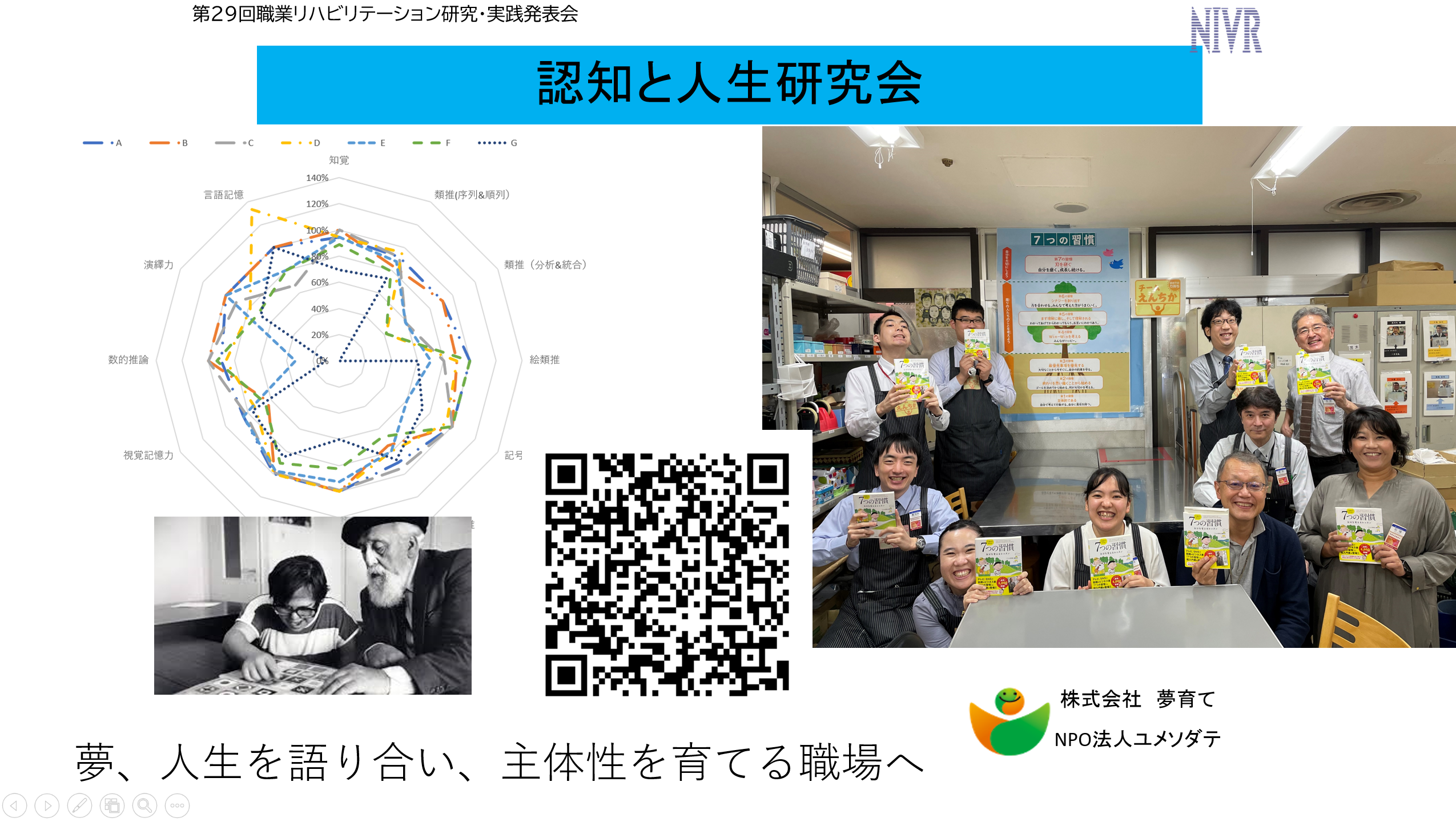 夢が育つと、自身の現状と夢との間にあるギャップを埋めるべく努力したり、周囲の協力を取り付ける必要がでてきます。例えば、知的障がいのある人たちが、自らの資質の向上に努力するようになります。背中を押されていやいや取り組むのとは雲泥の差があります。認知機能の伸びしろをみるための長いアセスメントを受けたり、認知機能向上のためのトレーニングに取組んだり、職場の仲間と読書会をしたりといった自らを成長させる活動を楽しむようになってきます。