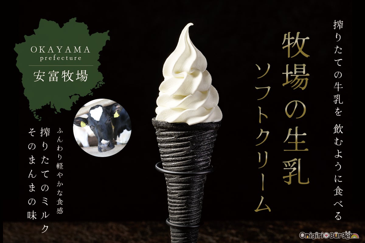 「おにぎりバーガー」をスイーツで表現!?搾りたての牛乳を飲むように食べる『牧場の生乳ソフトクリーム』が新登場!コラボレーション第三章は、岡山県「安富牧場」【OnigiriBurger関西国際空港本店】