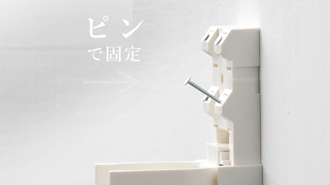 石膏ボードの壁にピンで取り付けるだけで、簡単です。電動工具は必要ありません。取り外した後も、ピンの刺し後は目立たず、賃貸でも安心です。