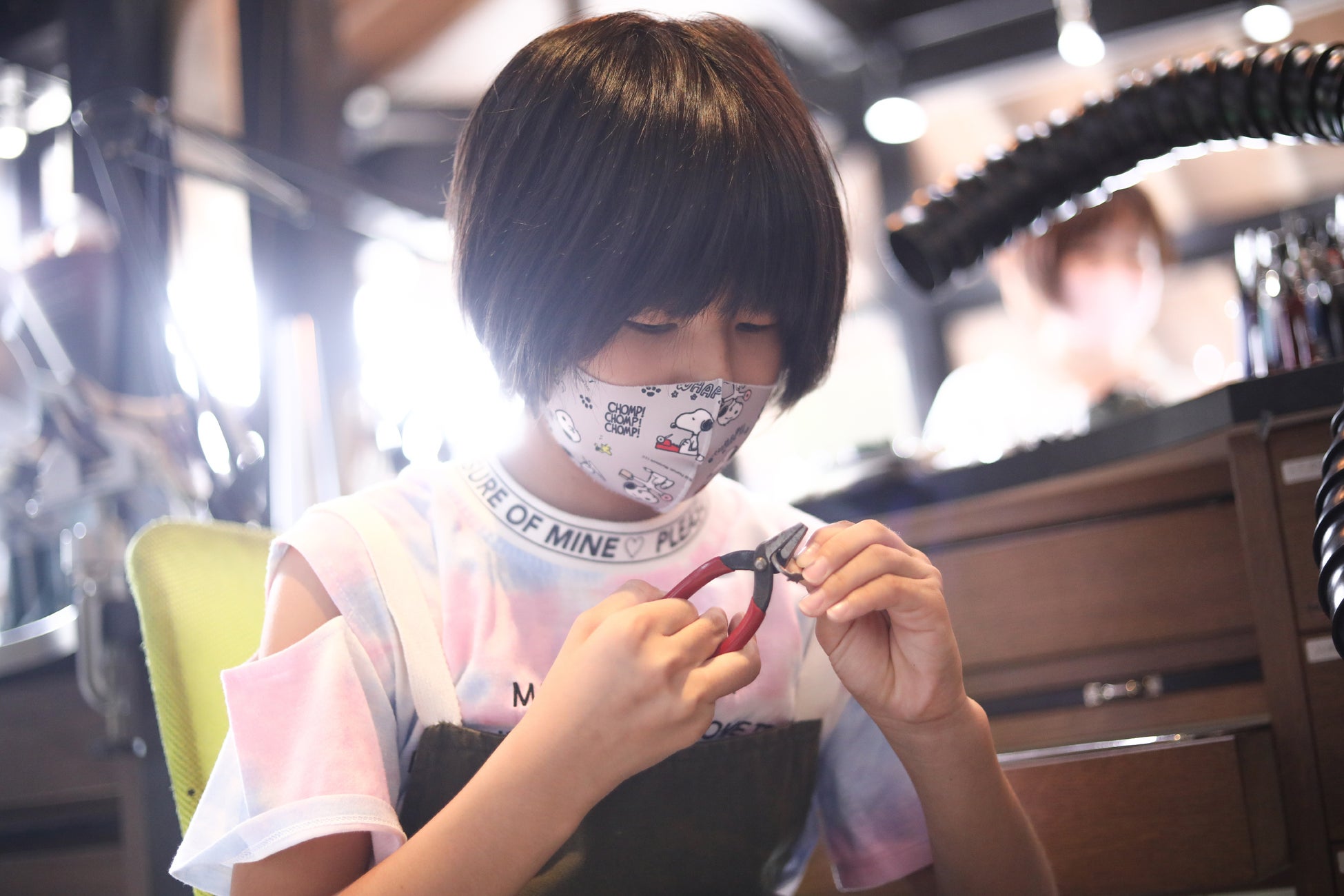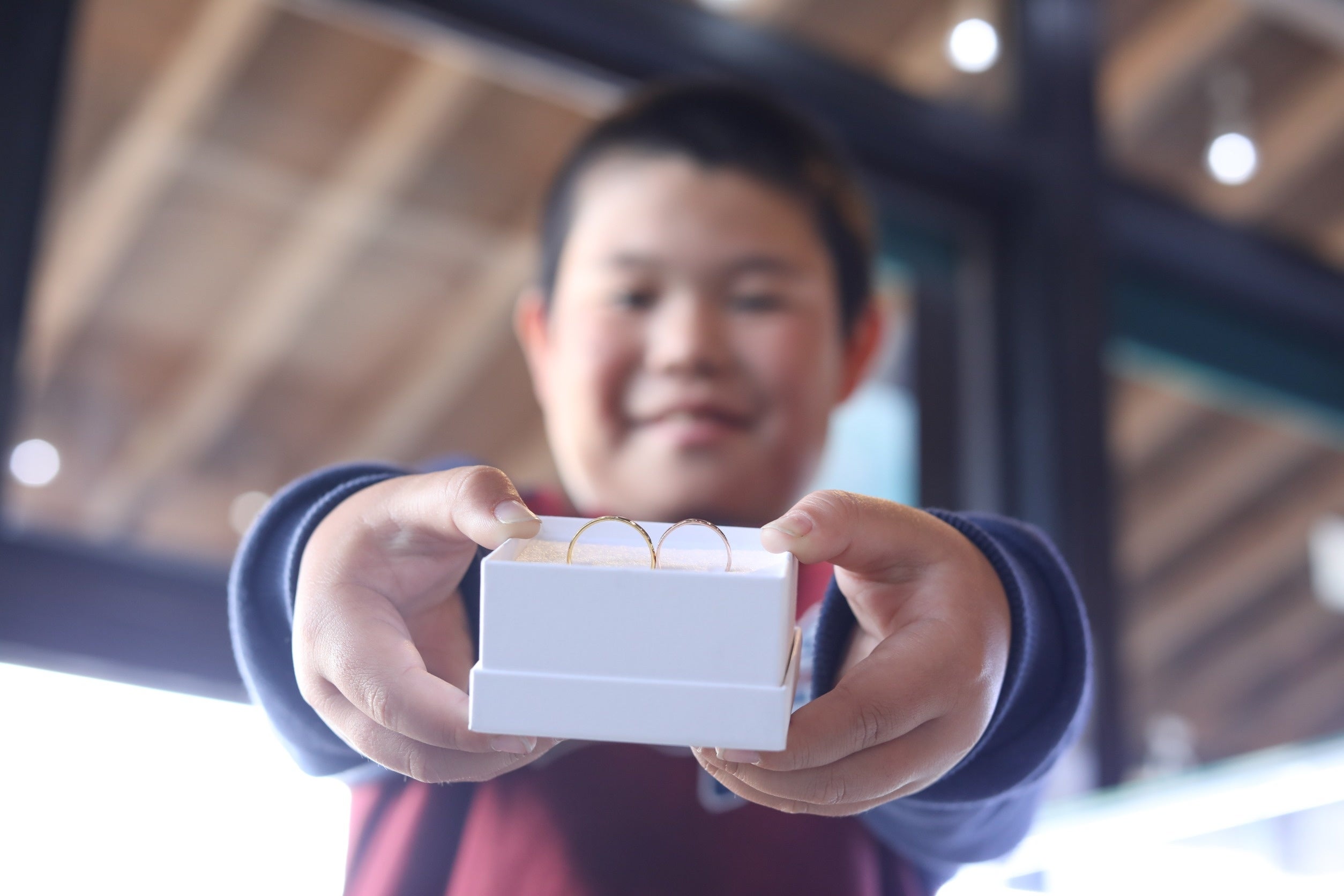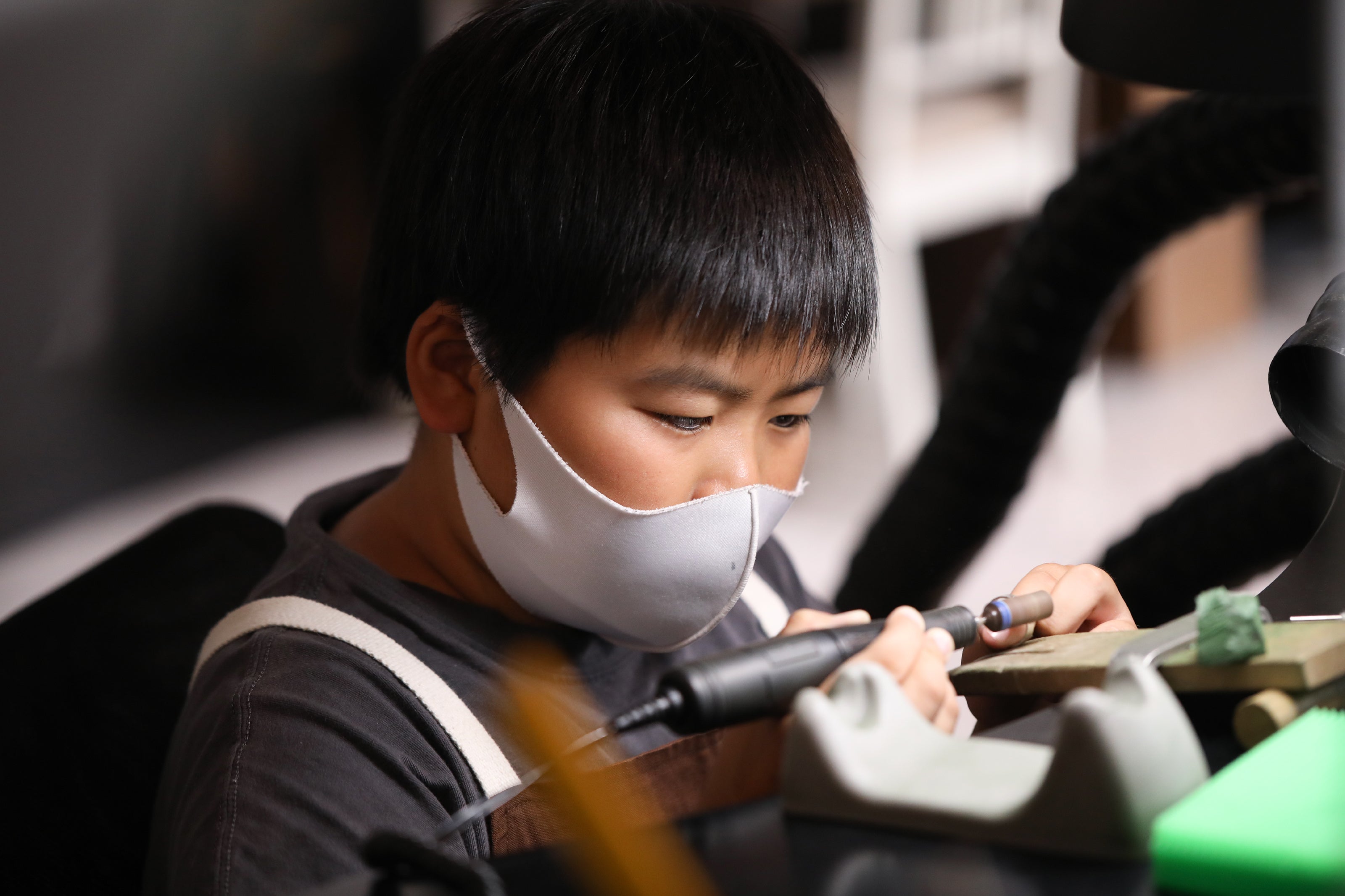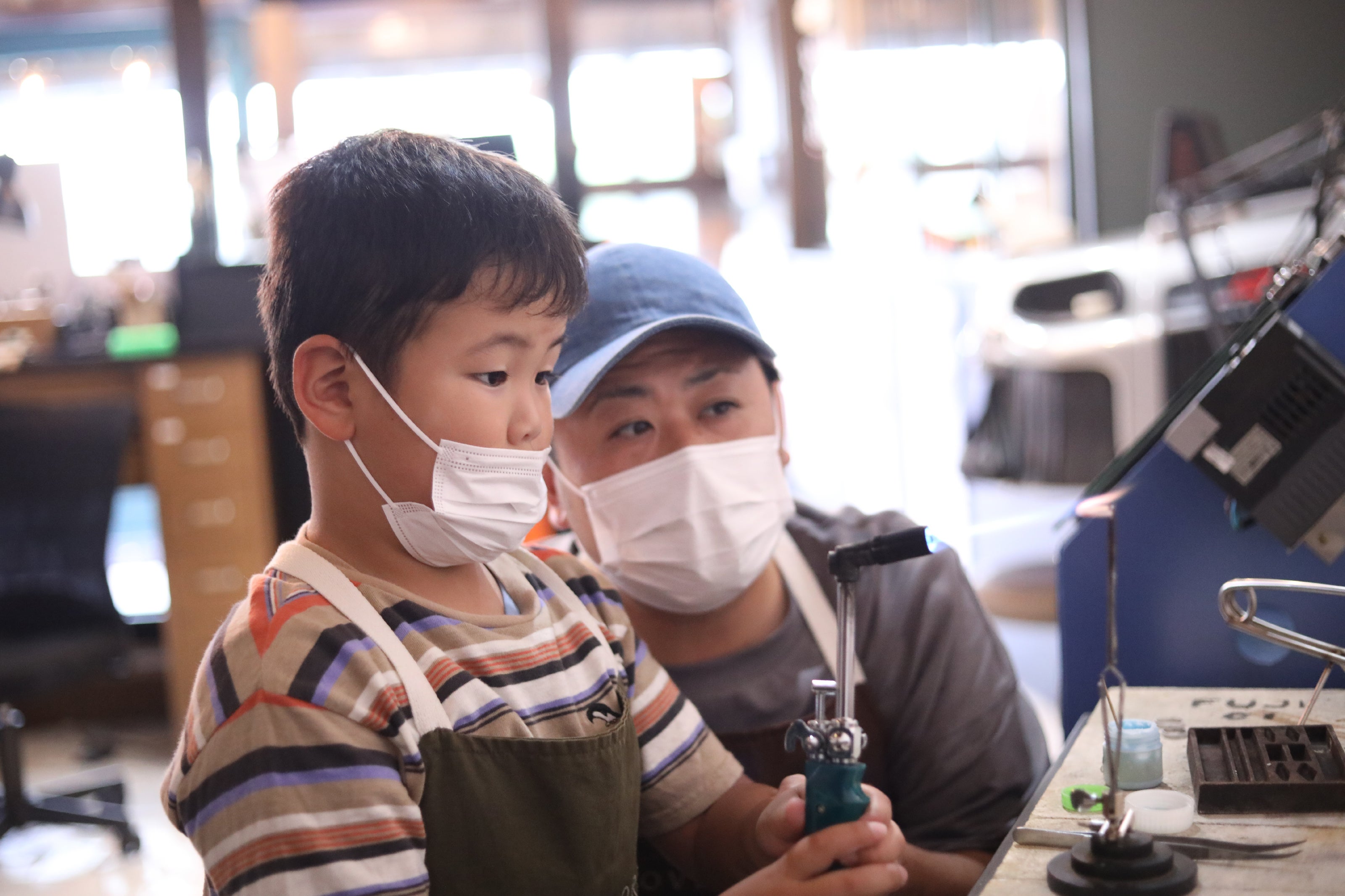 プロのジュエリー職人が使用する道具を使って2時間でリングを完成させられるワークショップ。お子様の真剣な表情もカメラマンが撮影します。