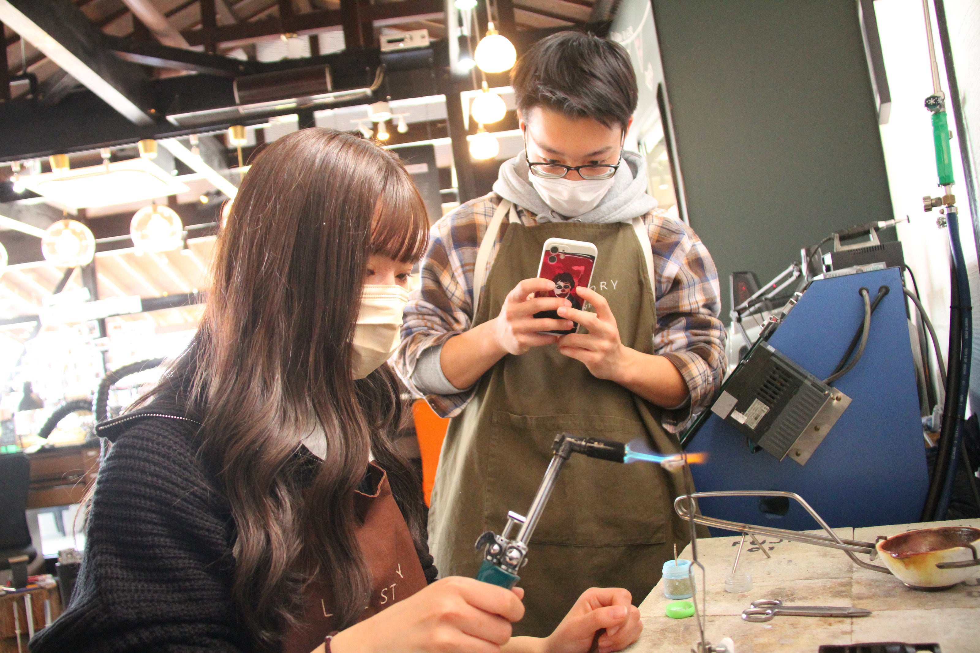 Cattonはふだんからジュエリー制作体験を行い、カップルやご夫婦、ご友人同士でそれぞれプロと同じようにジュエリーを作ってもらう制作体験サービスを提供しております。思い出とともにカタチに残るジュエリーは、唯一無二のサービスとして好評です。