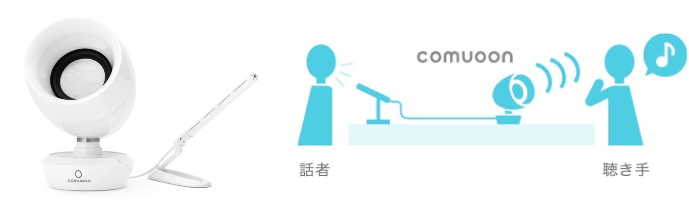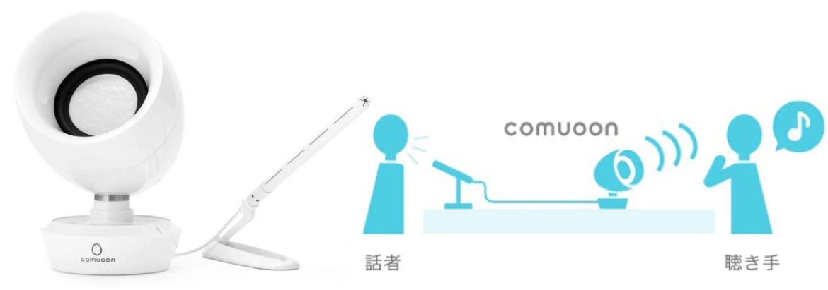 「comuoon®」は、補聴器のように従来の”聴き手”側のみの問題に焦点を当てるのではなく、”話し手”の声を聞きやすい音質(※1)に変換しコミュニケーションをサポートする、卓上型対話支援システムです。