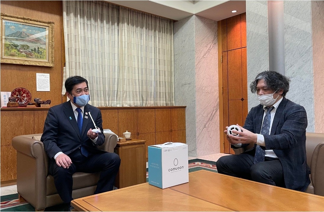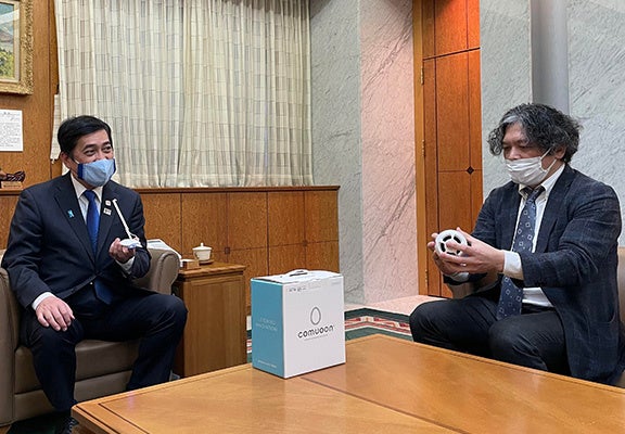聴こえの大切さを伝えていくとともに、誰もが聴こえやすい社会作りを目指すNPO法人 日本ユニバーサル・サウンドデザイン協会(以下、当協会)は、県知事室へ表敬訪問される来訪者との音声コミュニケーション環境向上を目的とし、卓上型対話支援機器「comuoon®(コミューン)」(以下、comuoon®)を寄贈いたしました。